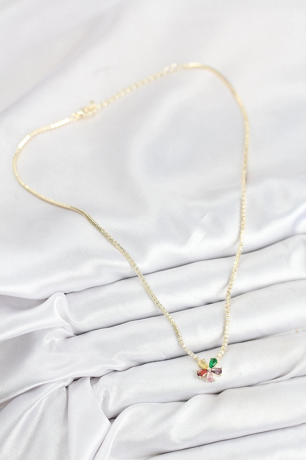 Erb Pirinç Zirkon Taşlı Su Yolu Asorti Çiçek Model Gold Renk Kadın Kolye