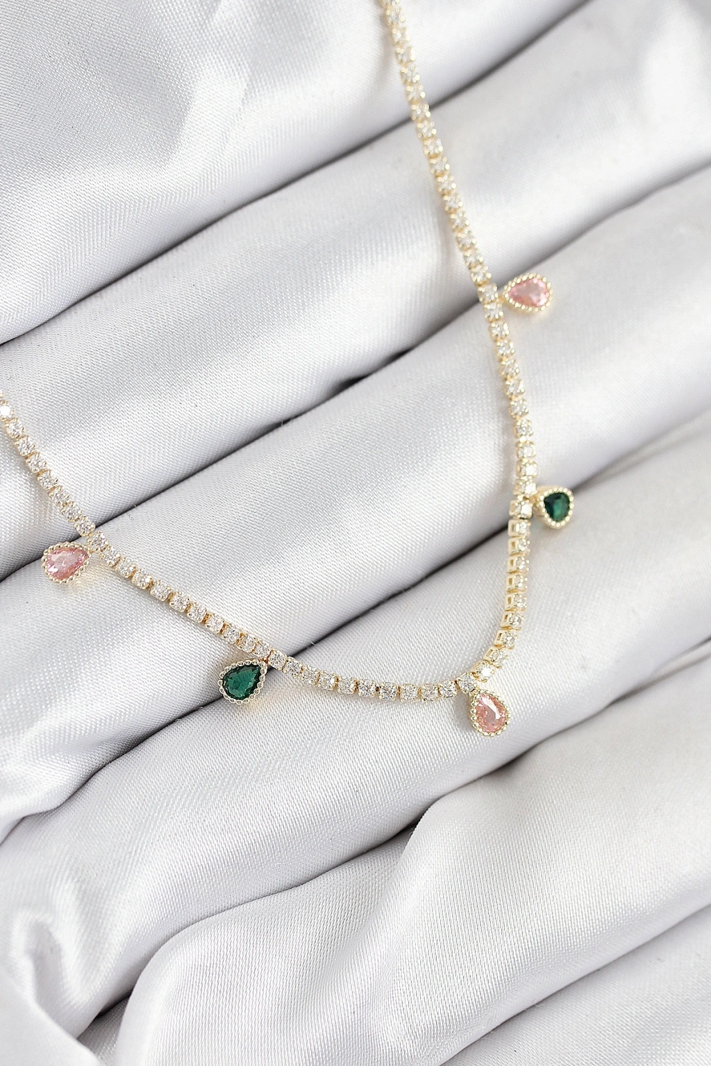 Erb Pirinç Zirkon Taşlı Su Yolu Damla Model Gold Renk Kadın Kolye