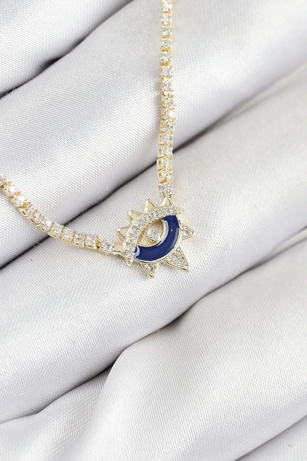 Erb Pirinç Zirkon Taşlı Su Yolu Göz Model Gold Renk Kadın Kolye