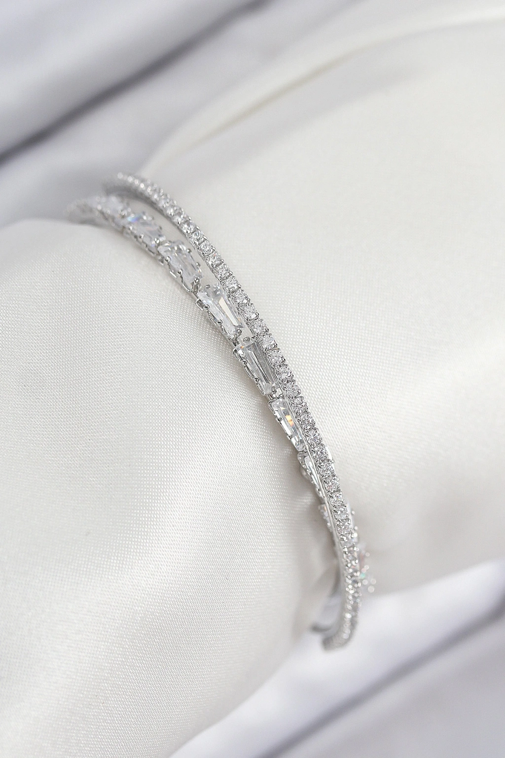 Erb Pirinç Zirkon Taşlı Su Yolu Model Gümüş Renk Kadın Bileklik