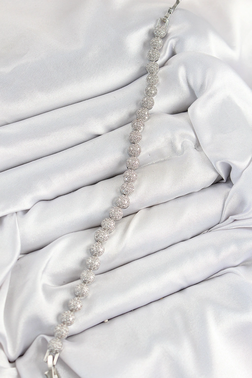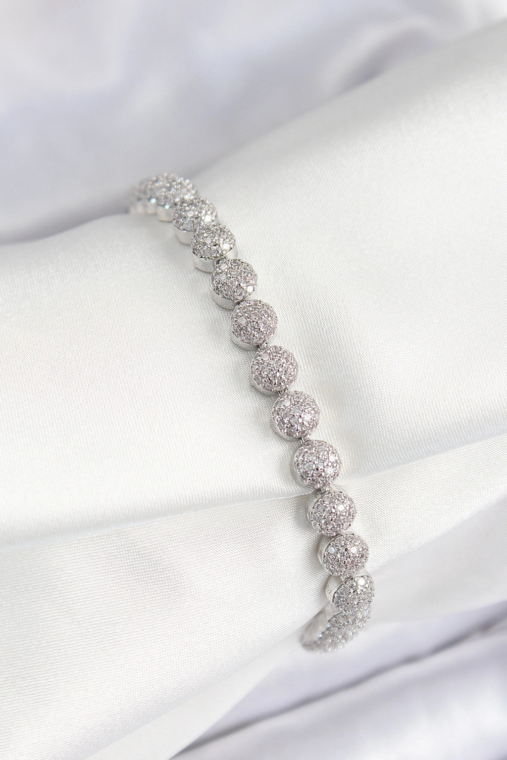 Erb Pirinç Zirkon Taşlı Yarım Topcuk Model Gümüş Renk VIP Seri Kadın Bileklik