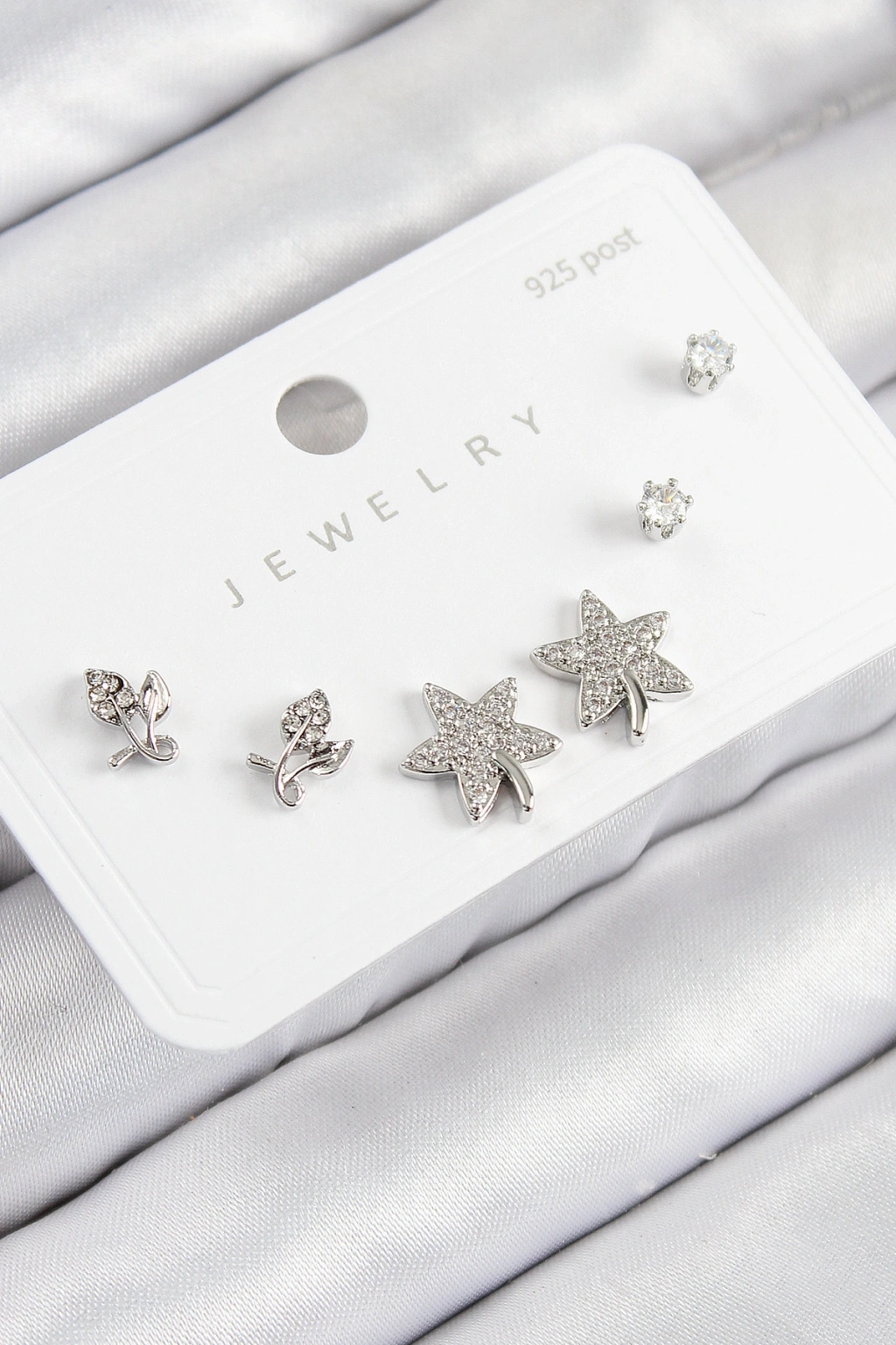 Erb Pirinç Zirkon Taşlı Yıldız Ve Gül Model Gümüş Renk 925 Ayar Gümüş Çivi Kadın Küpe Set