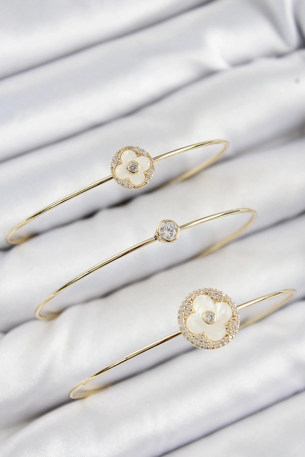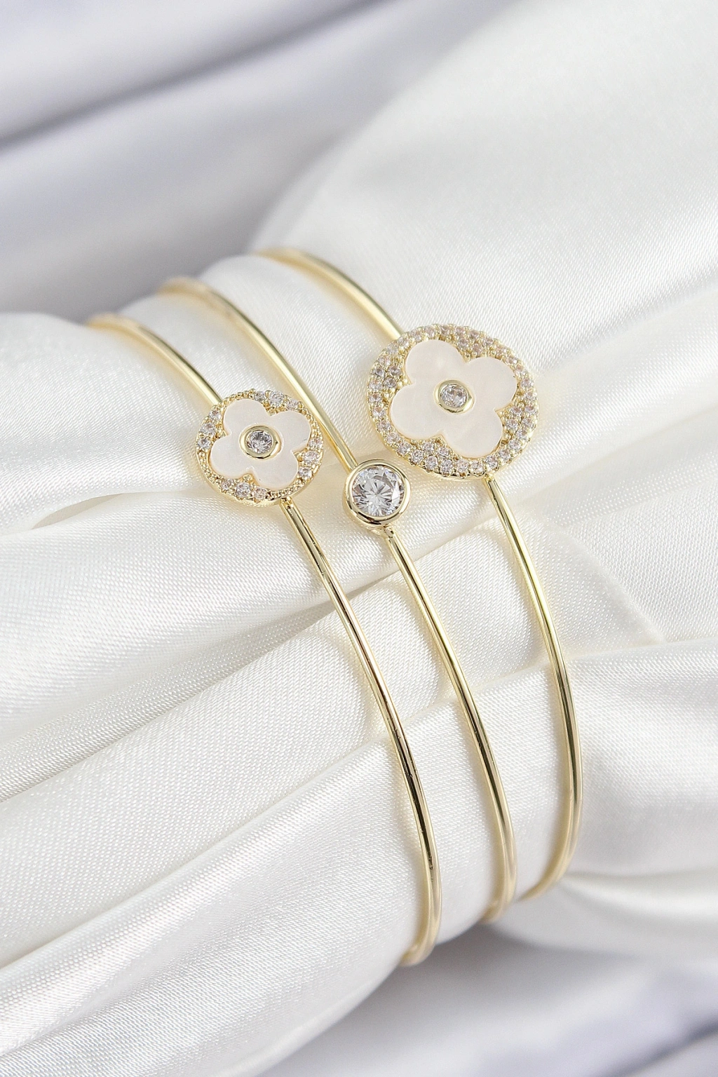 Erb Pirinç Zirkon Taşlı Yonca Model Gold Renk Vip 3'lü Kadın Bileklik