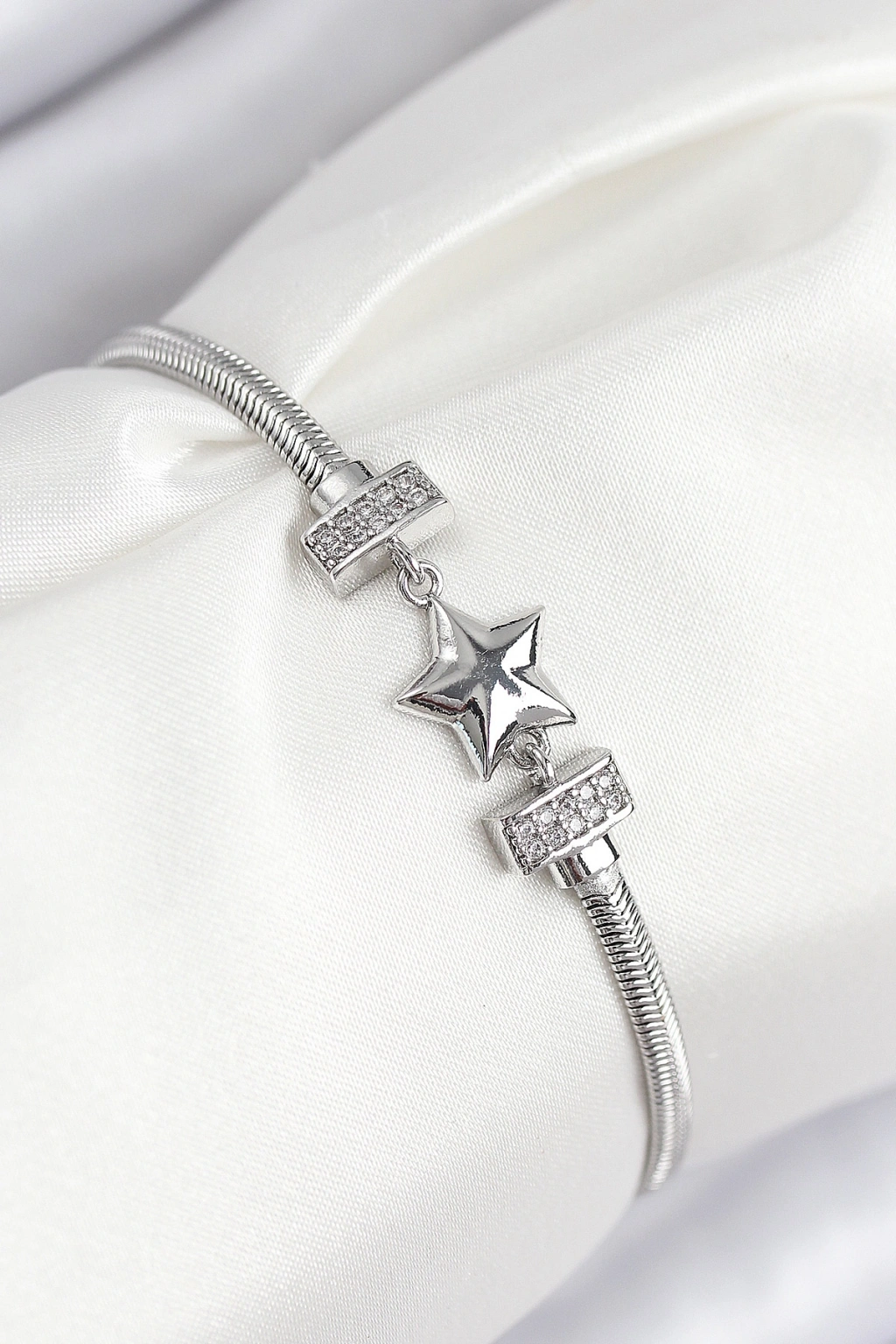 Erb Pirinç Zirkon Taşlı Yonca Model Gümüş Renk Kadın Bileklik