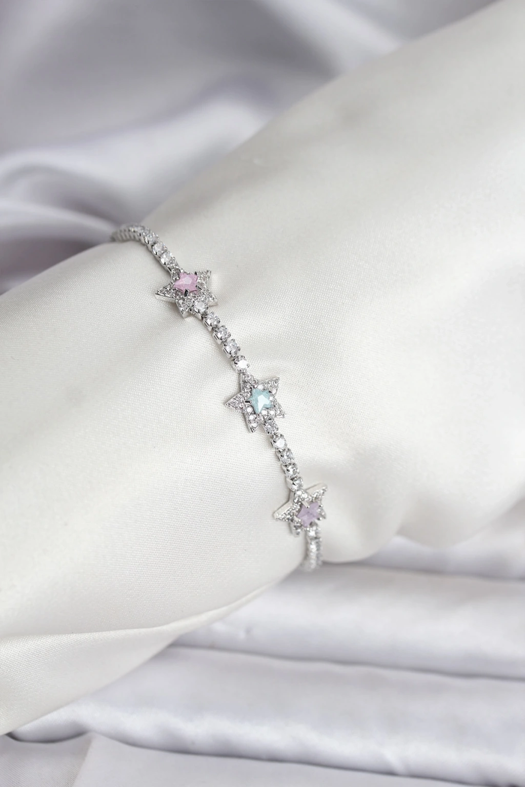 Erb Renkli Yıldız Model Zirkon Taşlı Gümüş Renk Pirinç Su Yolu Kadın Bileklik