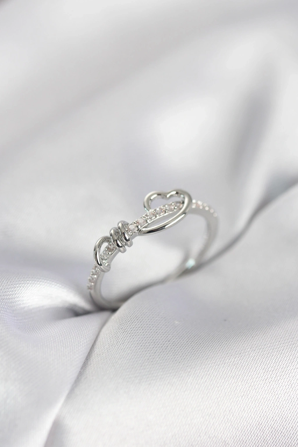 Erb Sarmal Kalp Model Zirkon Taşlı Gümüş Renk Kadın Yüzük