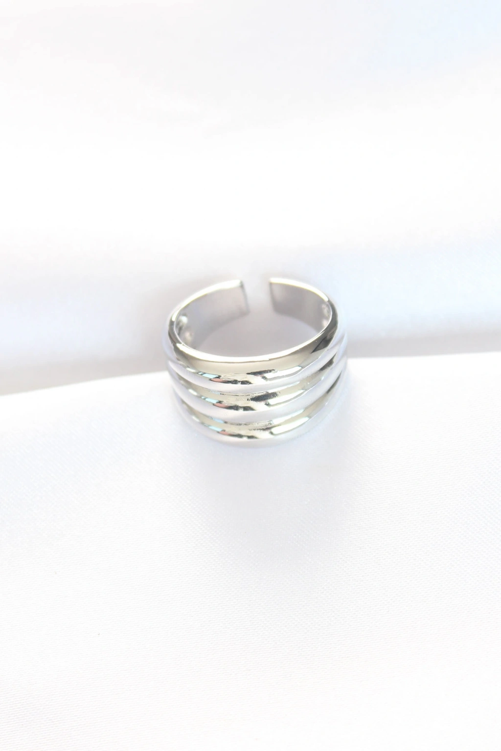 Erb Silver Renk Ayarlanabilir Çizgili Bombe Yüzük