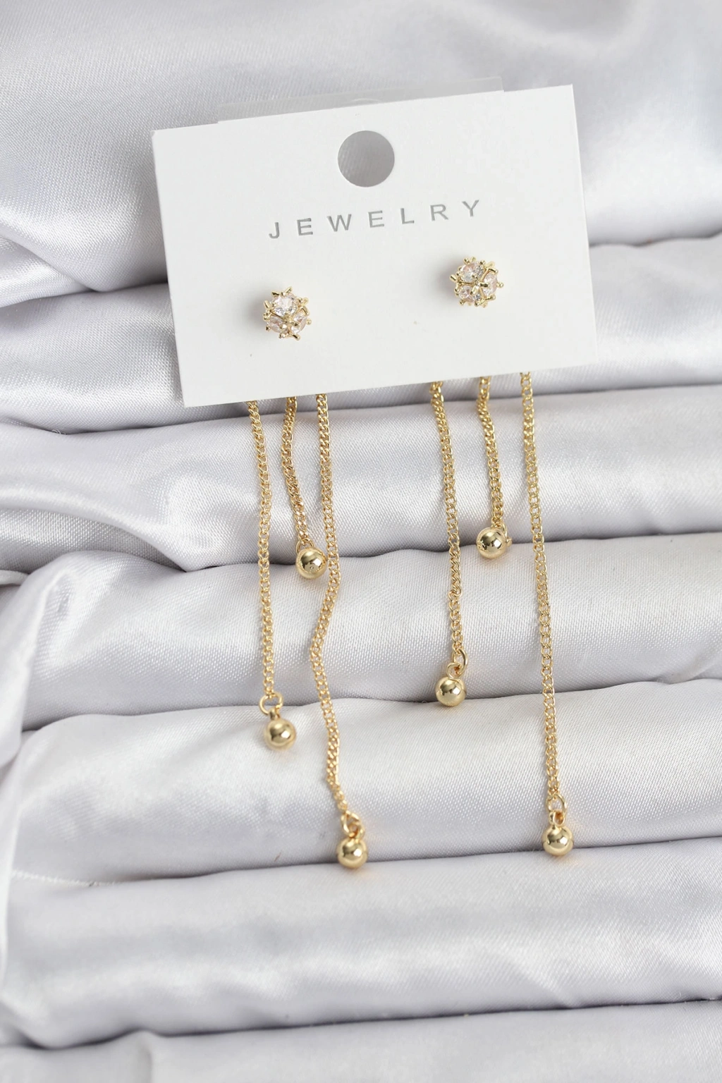 Erb Topçuk Model Gold Renk Pirinç Sallantılı Kadın Küpe Seti