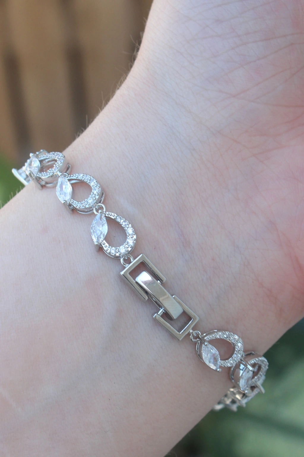 Erb Vip Seri Pirinç Zirkon Taşlı Gümüş Renk Arpa Model Bileklik