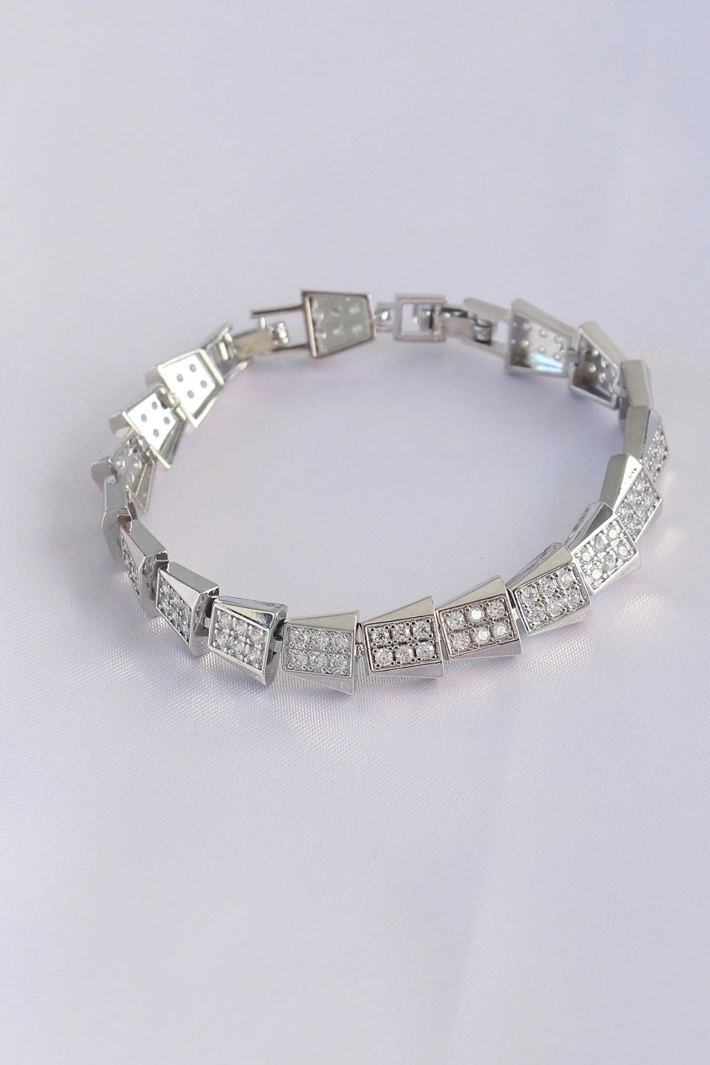 Erb Vip Seri Pirinç Zirkon Taşlı Gümüş Renk Geometrik Bileklik