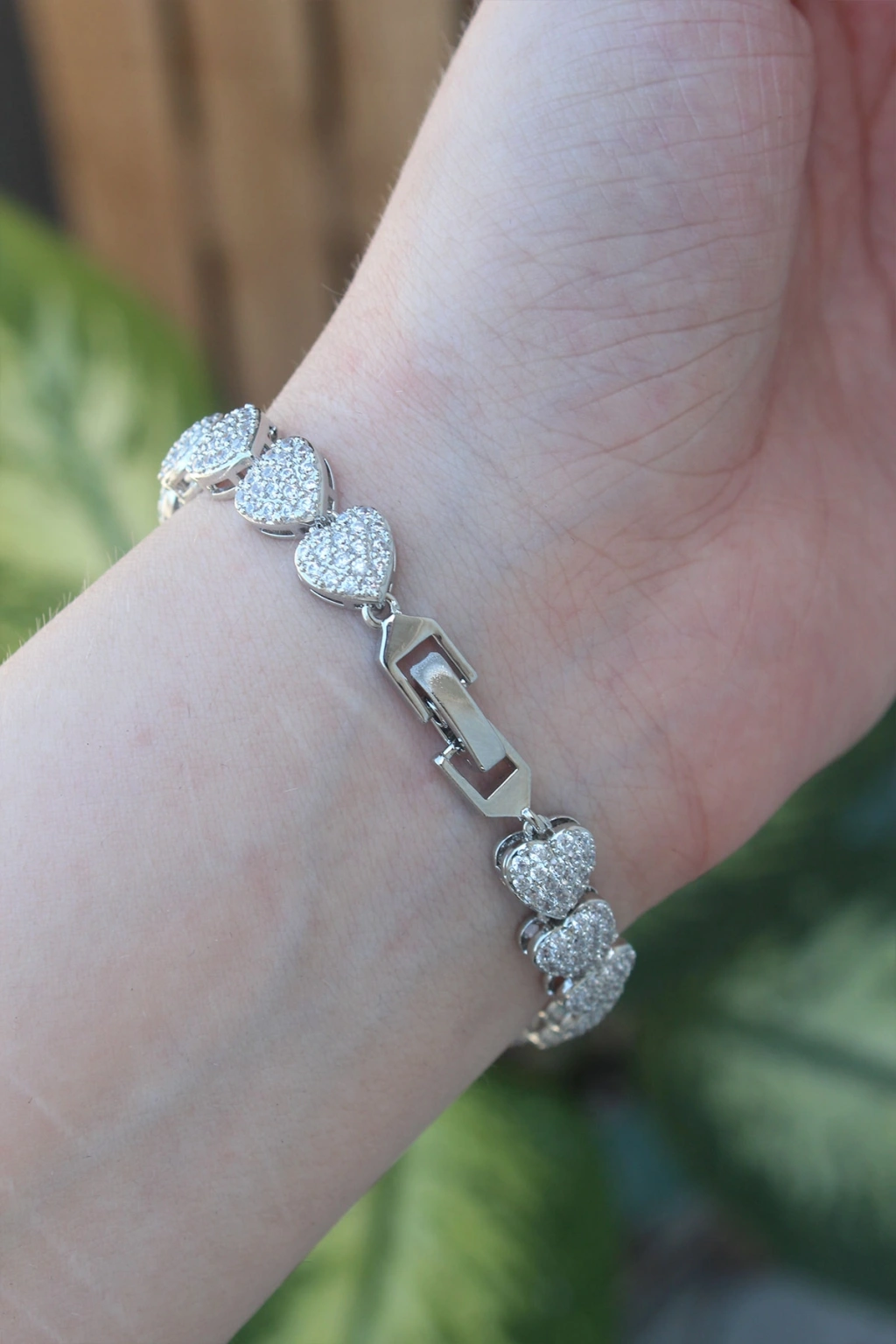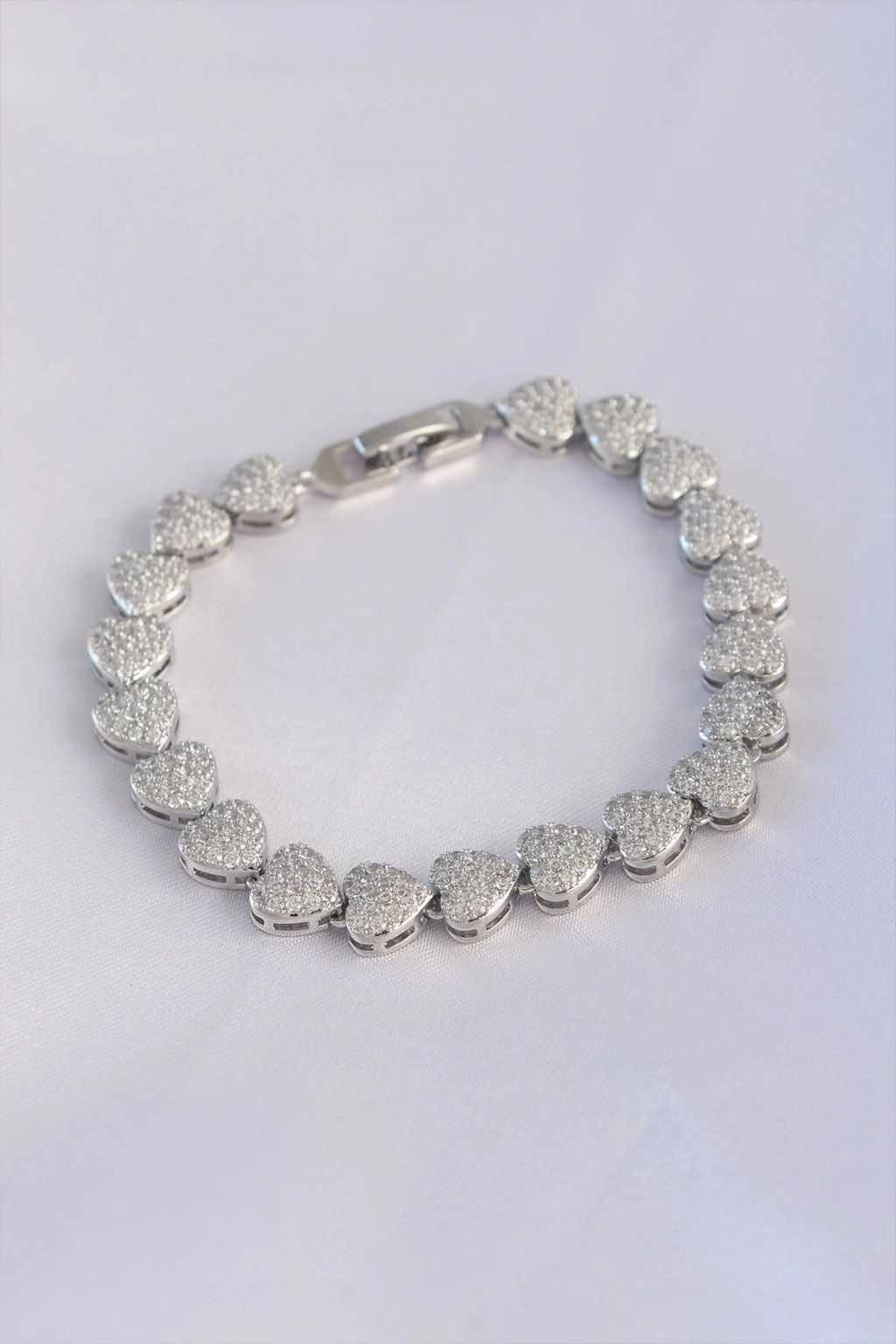 Erb Vip Seri Pirinç Zirkon Taşlı Gümüş Renk Kalp Model Bileklik