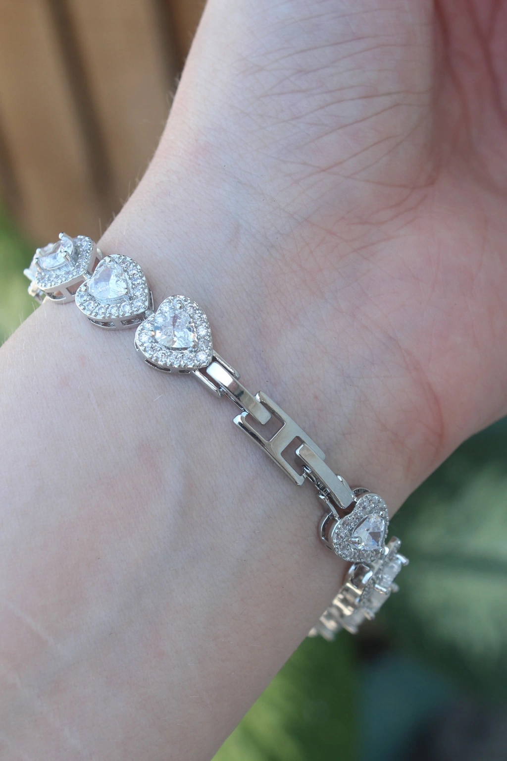 Erb Vip Seri Pirinç Zirkon Taşlı Gümüş Renk Kalp Model Bileklik