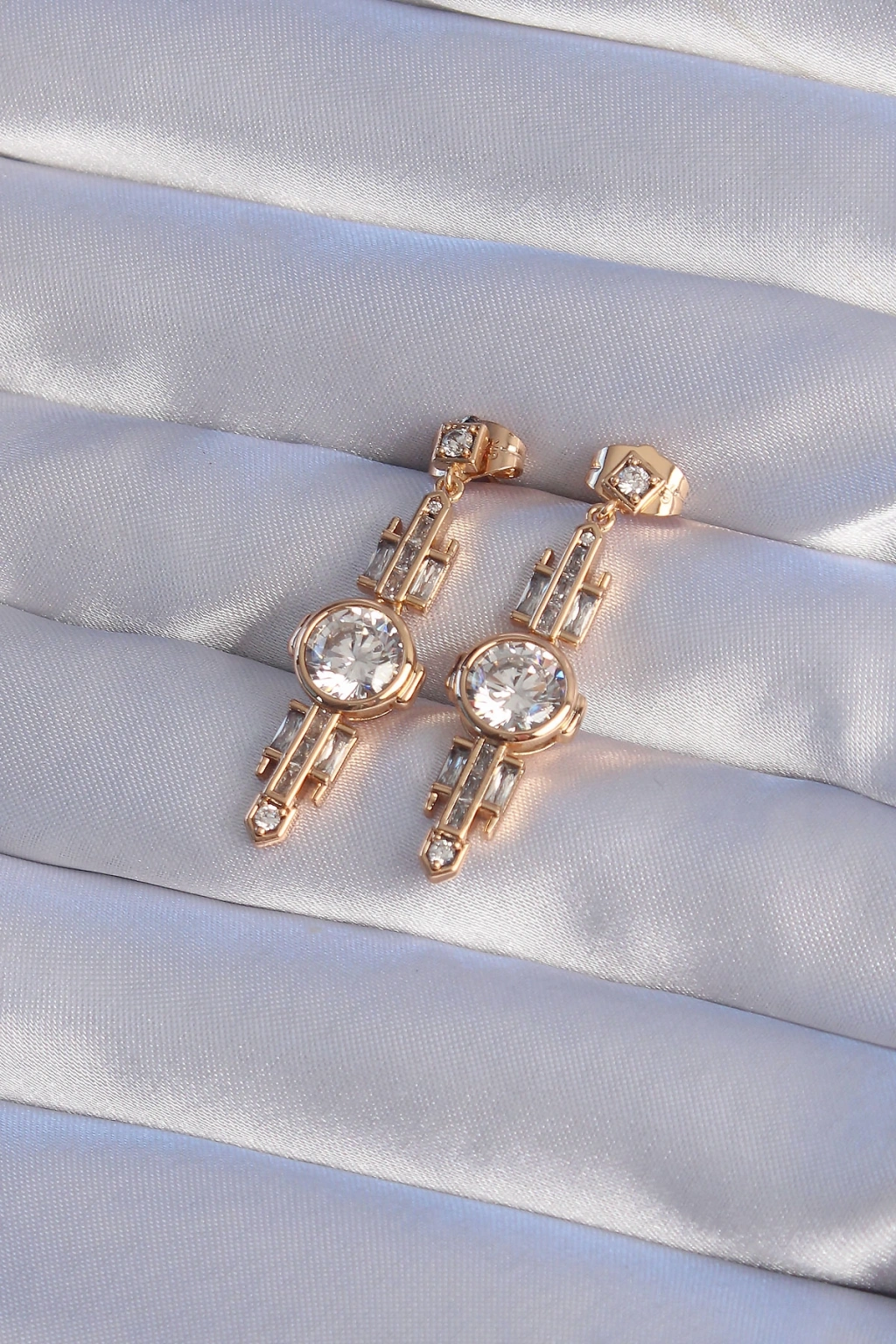 Erb XUPİNG Rose Renk Zirkon Taşlı Geometrik Sallantılı Küpe