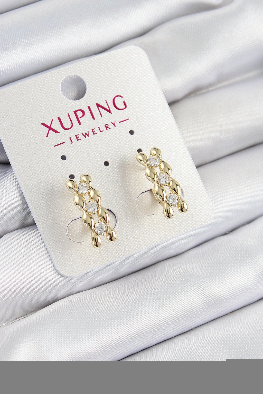 Erb Xuping Zirkon Taşlı Sıralı Damla Model Gold Renk Kadın Küpe