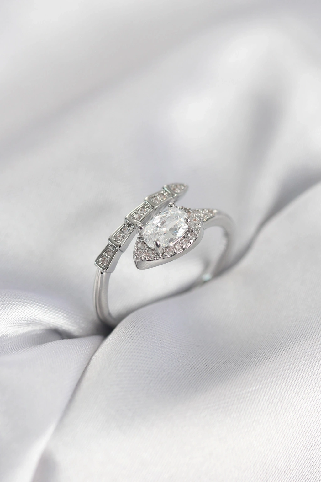 Erb Yılan Model Gümüş Renk Zirkon Taşlı Kadın Yüzük