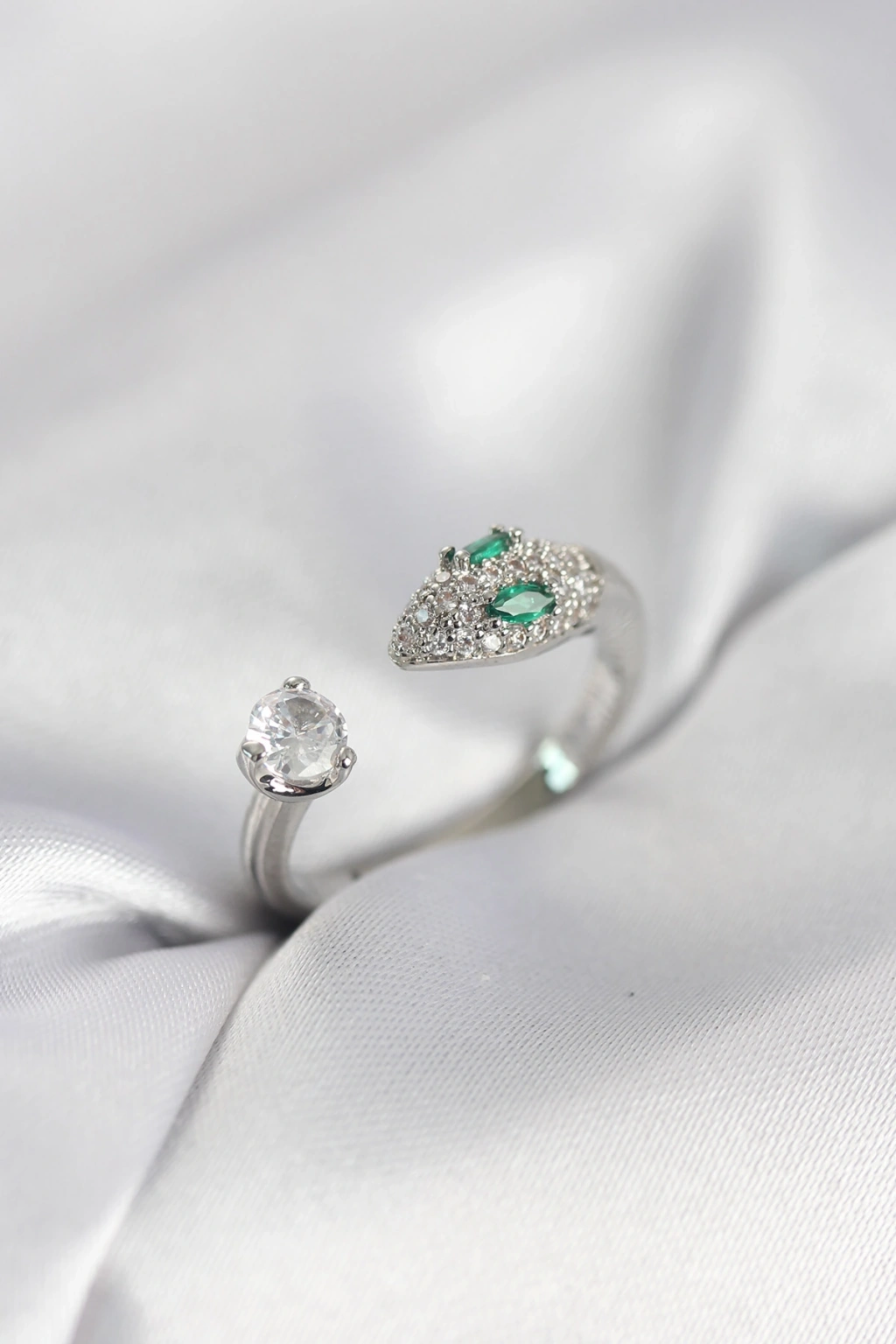 Erb Yılan Model Zirkon Taşlı Gümüş Renk Kadın Yüzük
