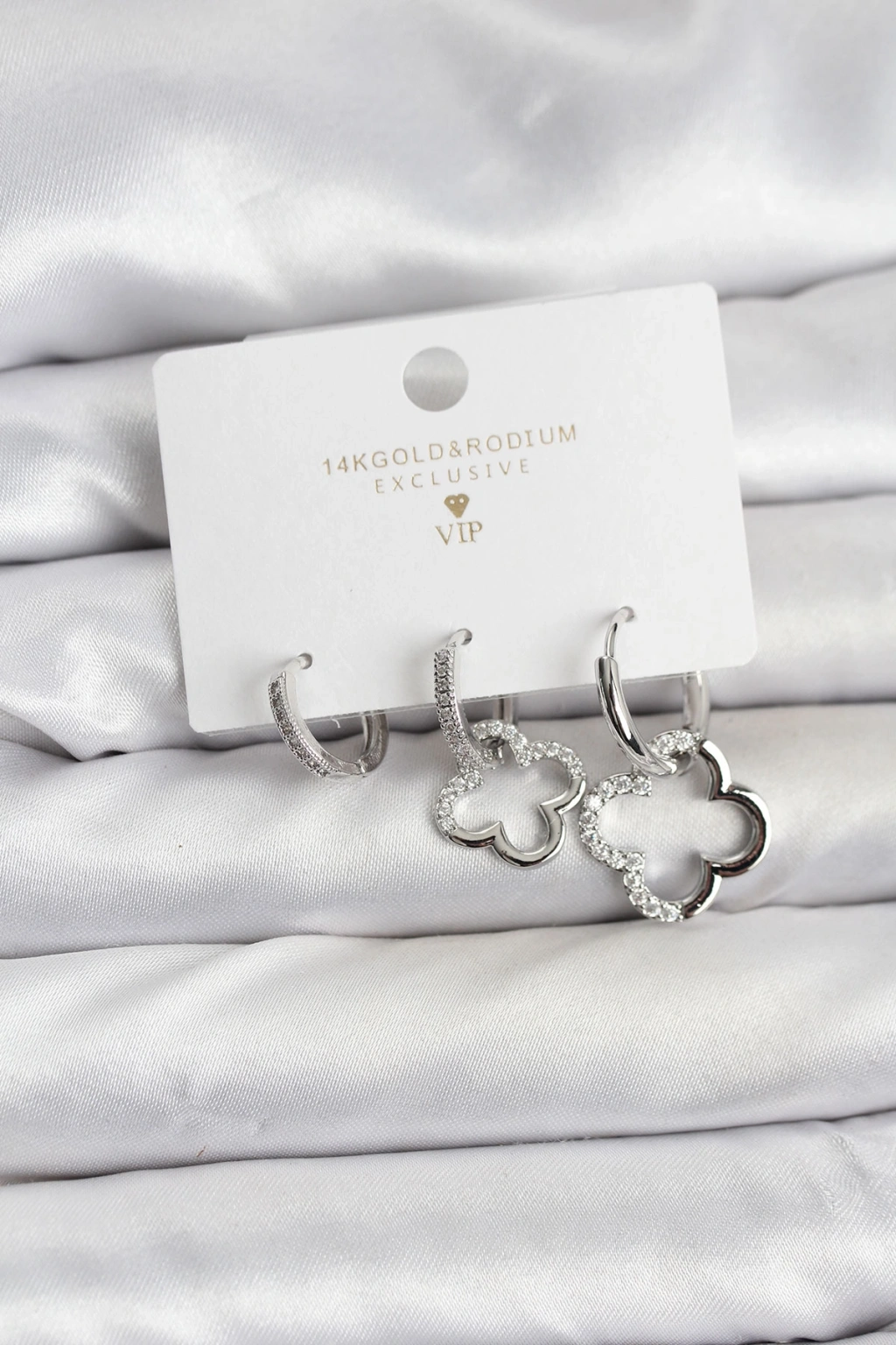 Erb Yonca Model Gümüş Renk Pirinç 3'lü Kadın Küpe Seti
