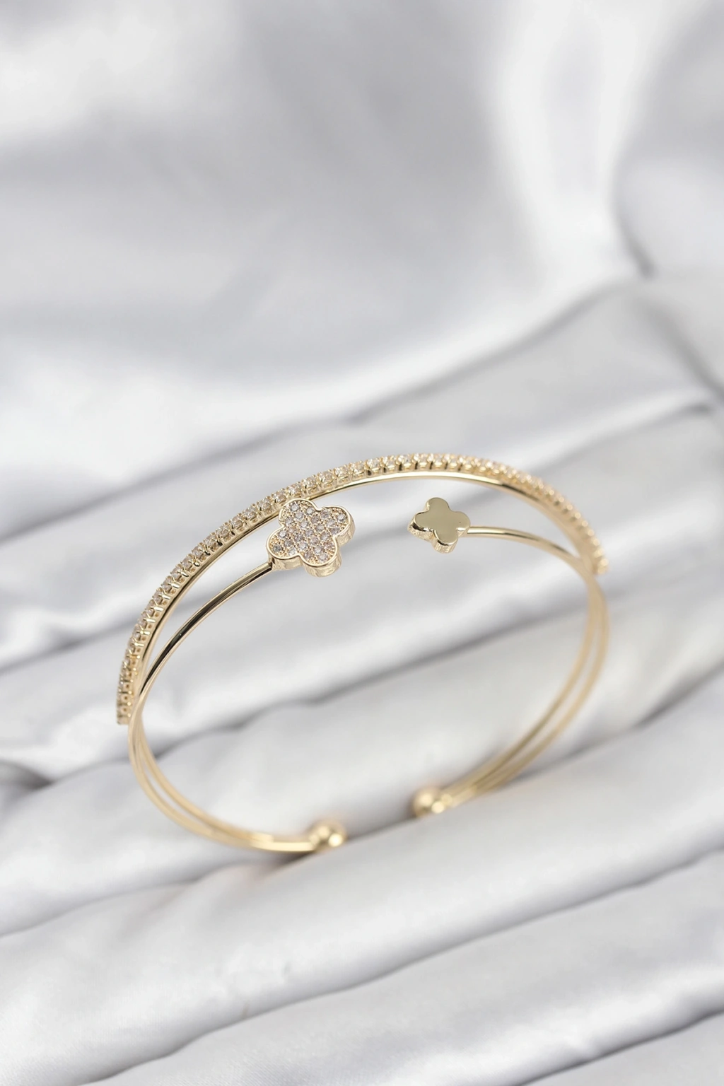 Erb Yonca Model Pirinç Gold Renk Kadın Bileklik
