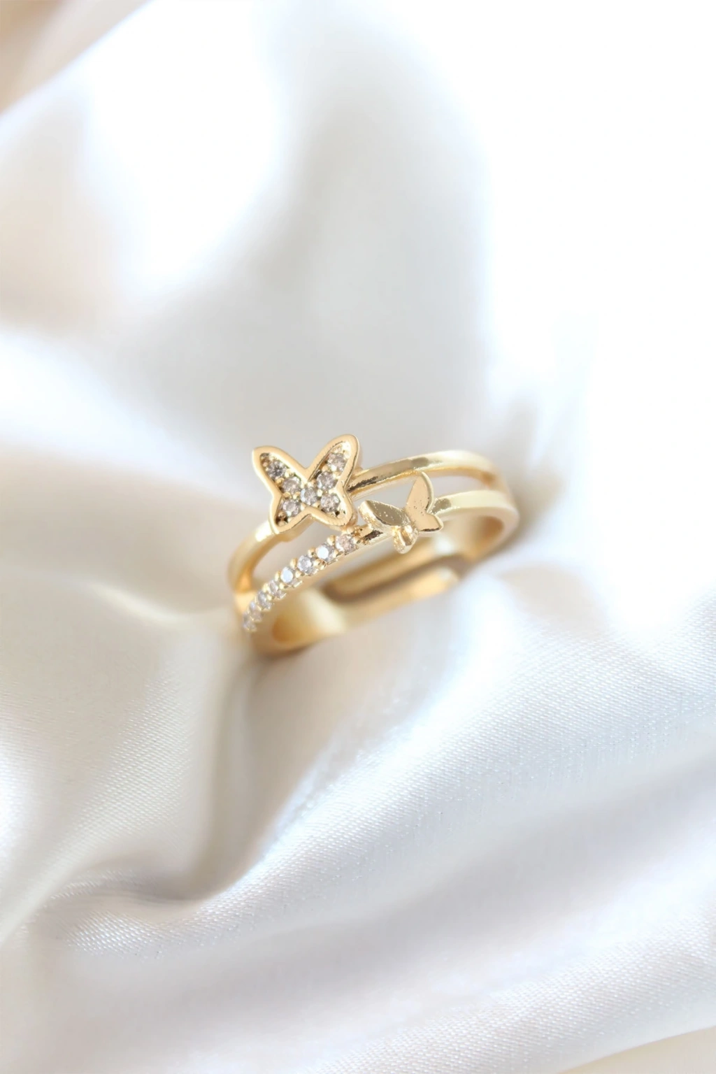 Erb Zirkon Taşlı Altın Kaplama Kelebek Kadın Yüzük