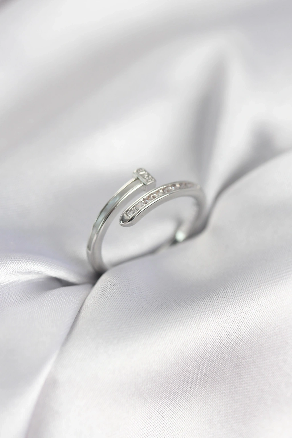 Erb Zirkon Taşlı Gümüş Renk Yassı Çivi Model Kadın Yüzük