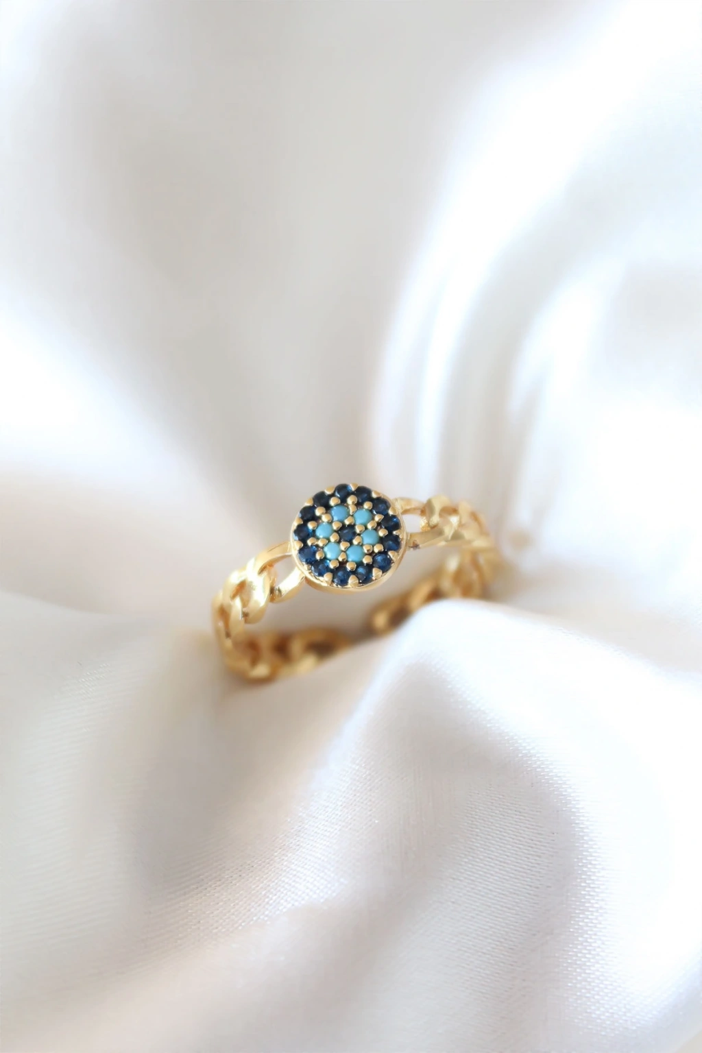 Erb Zirkon Taşlı Nazarlı Altın Kaplama Kadın Yüzük
