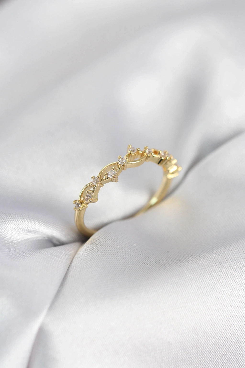 Erb Zirkon Taşlı Pirinç Gold Renk Kadın Yüzük