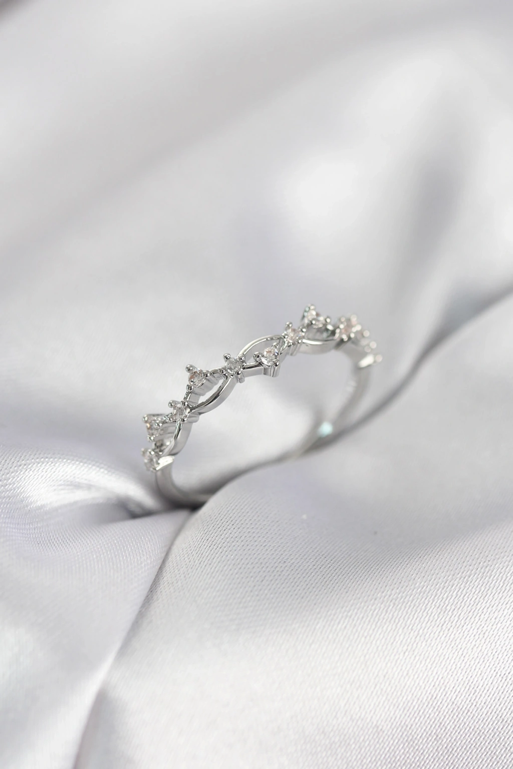 Erb Zirkon Taşlı Pirinç Gümüş Renk Kadın Yüzük
