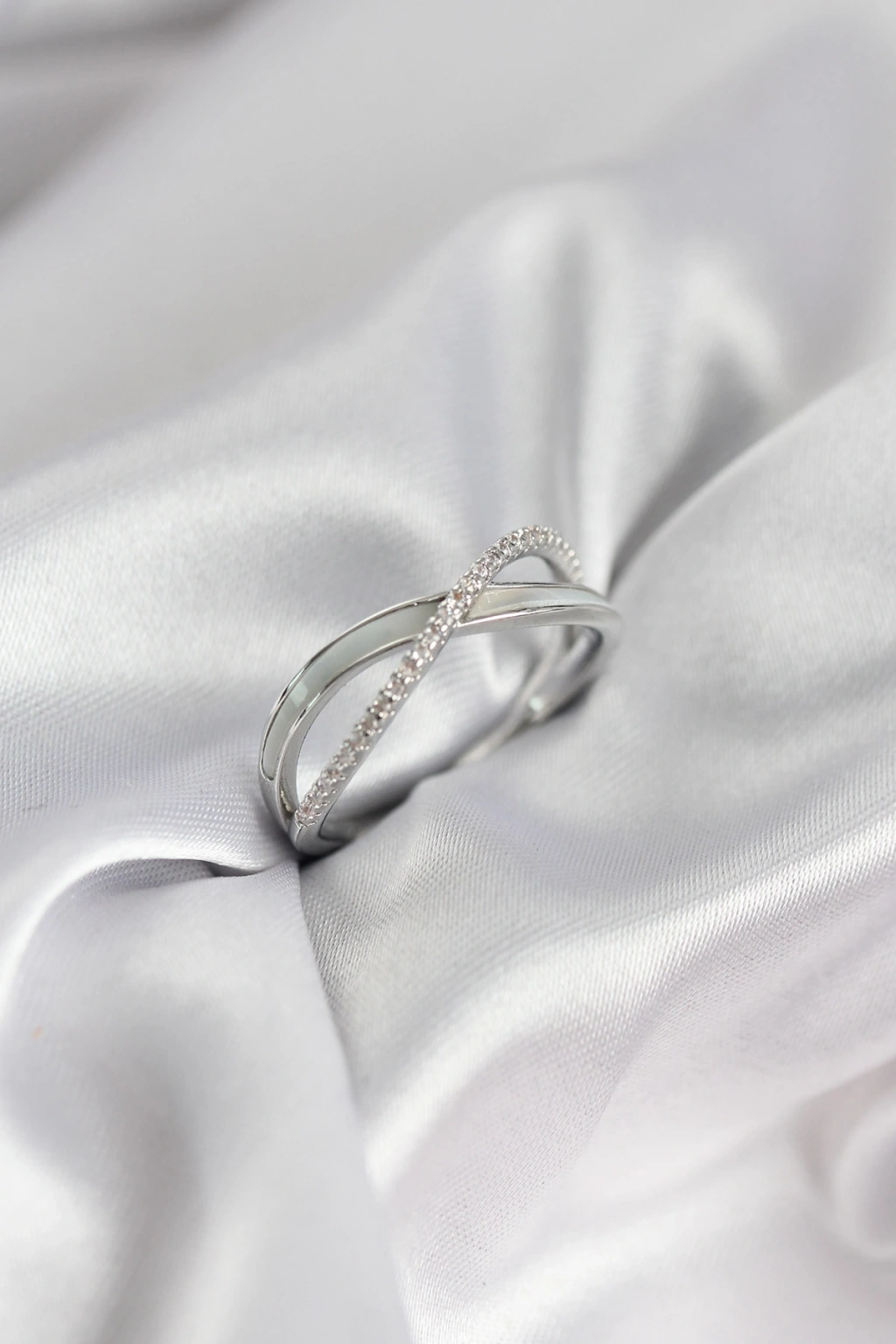 Erb Zirkon Taşlı Sarmal Sedefli Gümüş Renk Kadın Yüzük