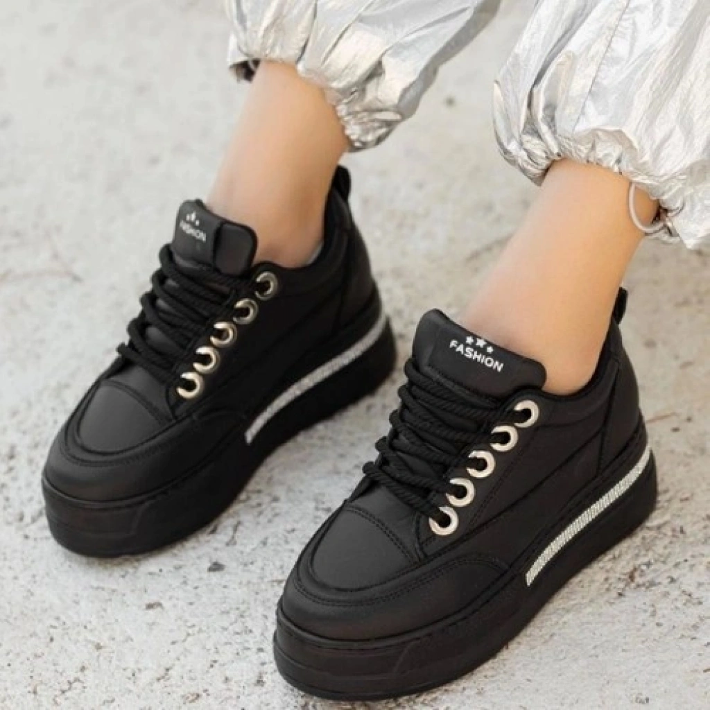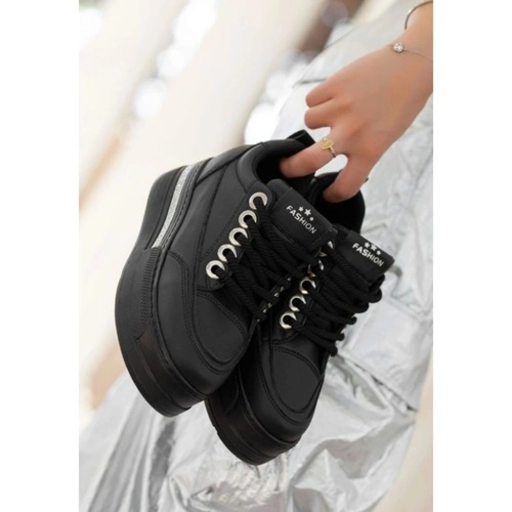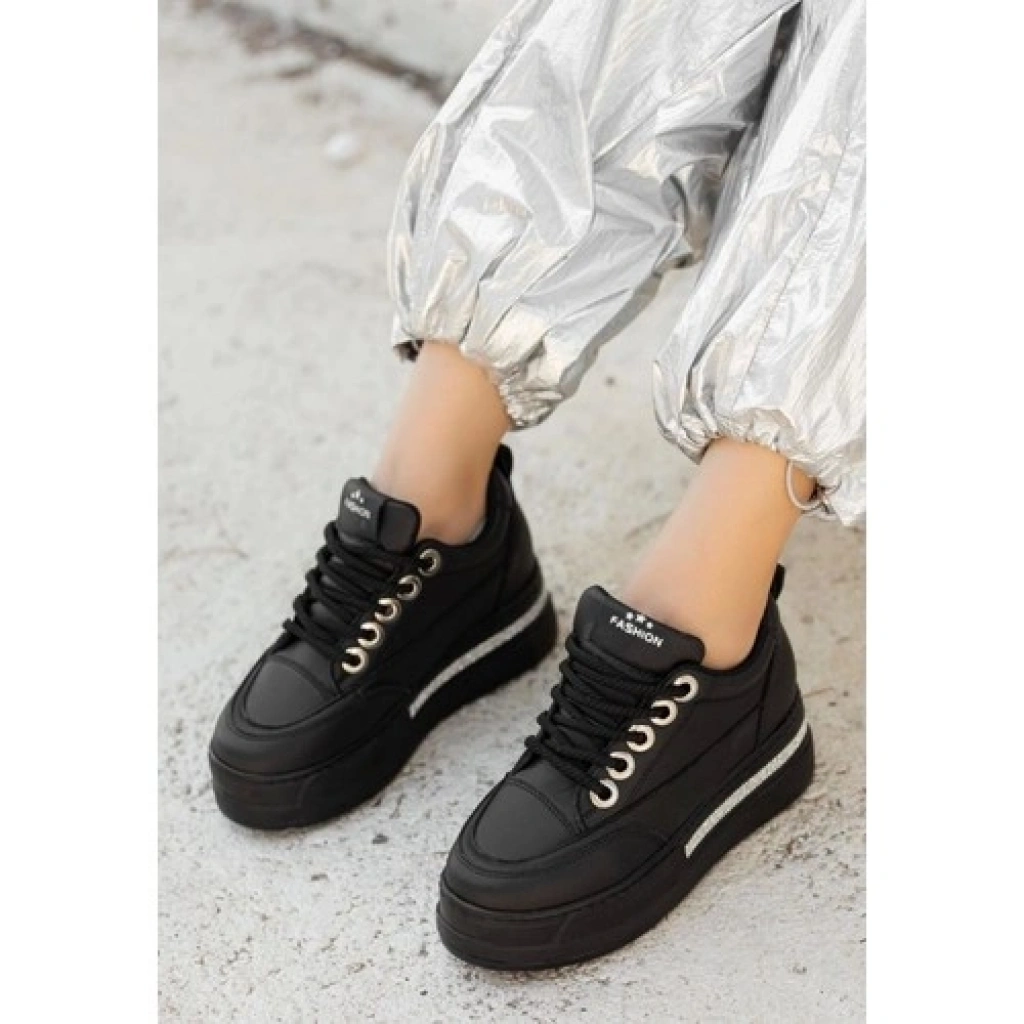 Erbilden Lulu Siyah Cilt Bağcıklı Spor Ayakkabı