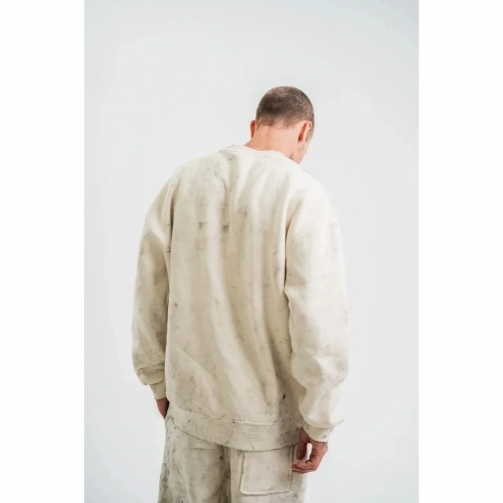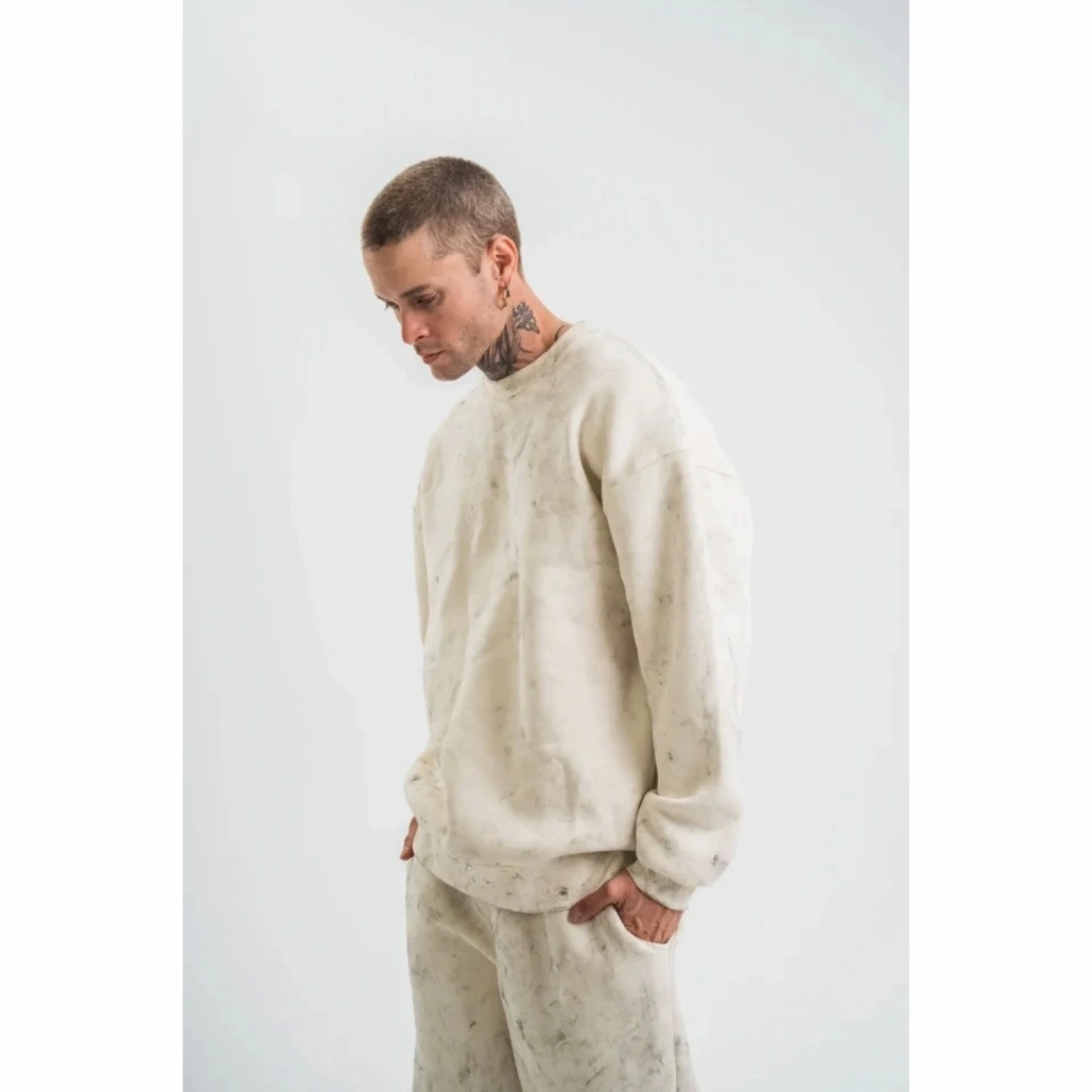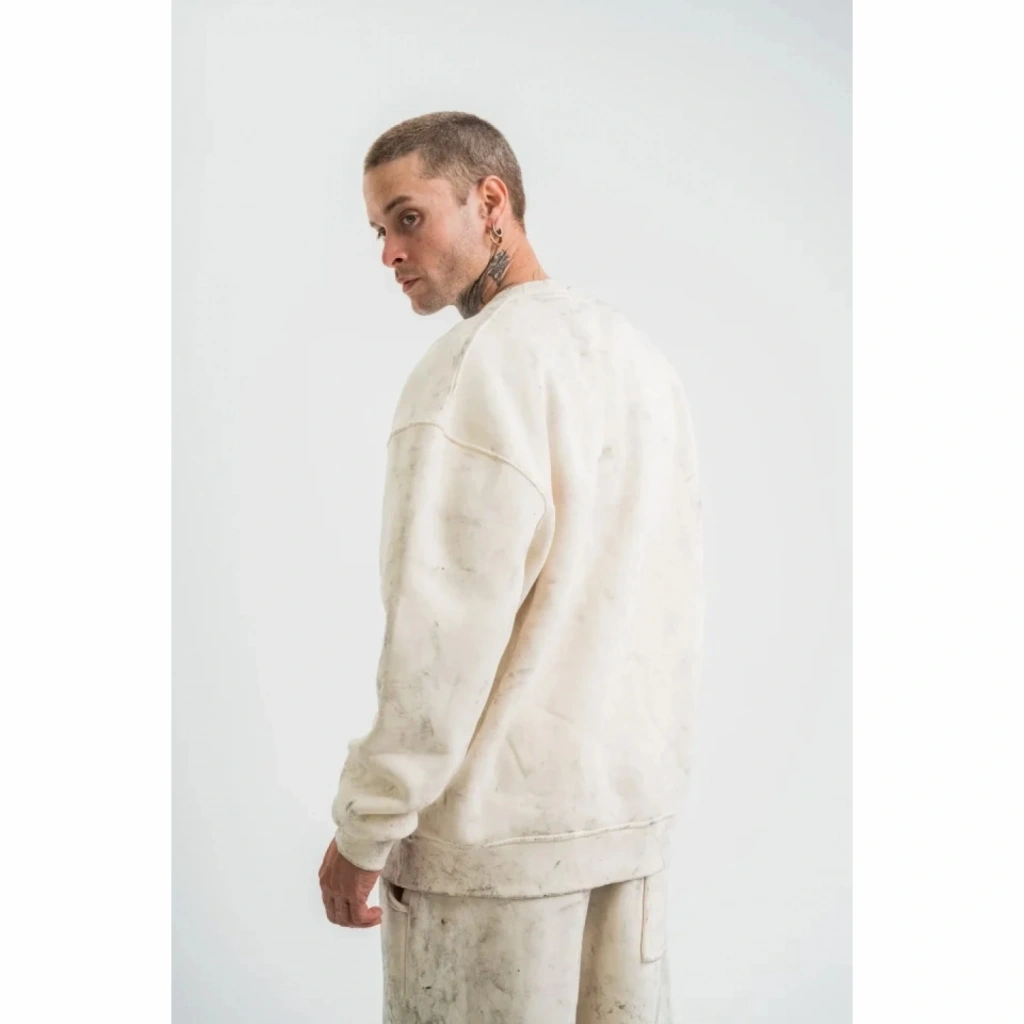 Erkek 3 İplik Pamuklu Yağ Yıkamalı Sweatshirt Double Oversize Bisiklet Yaka Uzun Kol - Krem