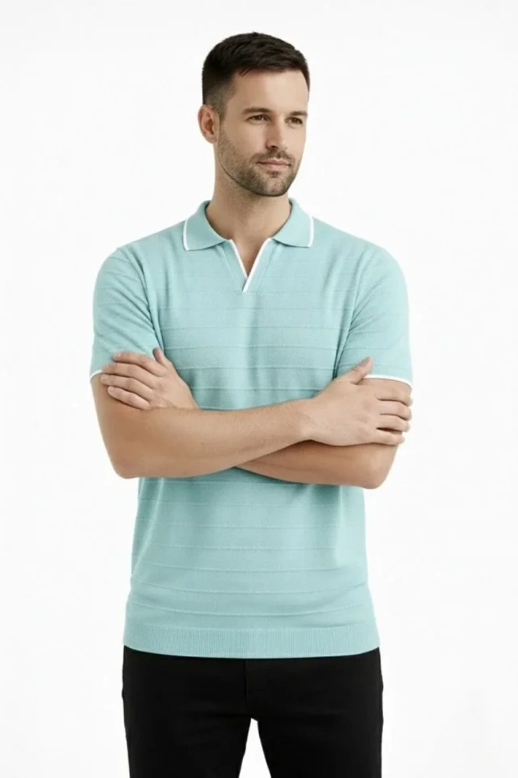 Erkek 3’lü Paket Triko Yakalı Düğmesiz Açık Yaka Fitilli Kısa Kollu Regular Fit Tişört - Bej, Beyaz, Mint Yeşili