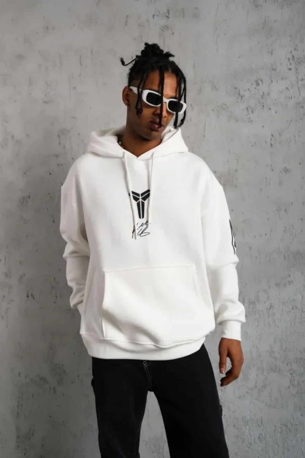 Erkek Baskılı Kapüşonlu Sweat - Beyaz