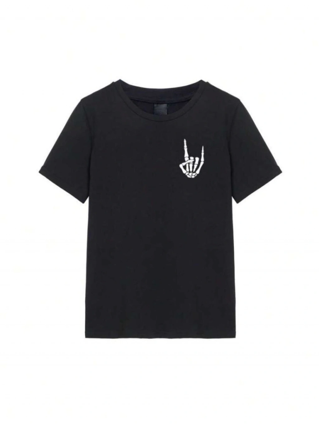 Erkek Bisiklet Yaka Ön Baskılı Kısa Kollu Tişört Streetwear Günlük Basic Pamuklu T-shirt - Siyah