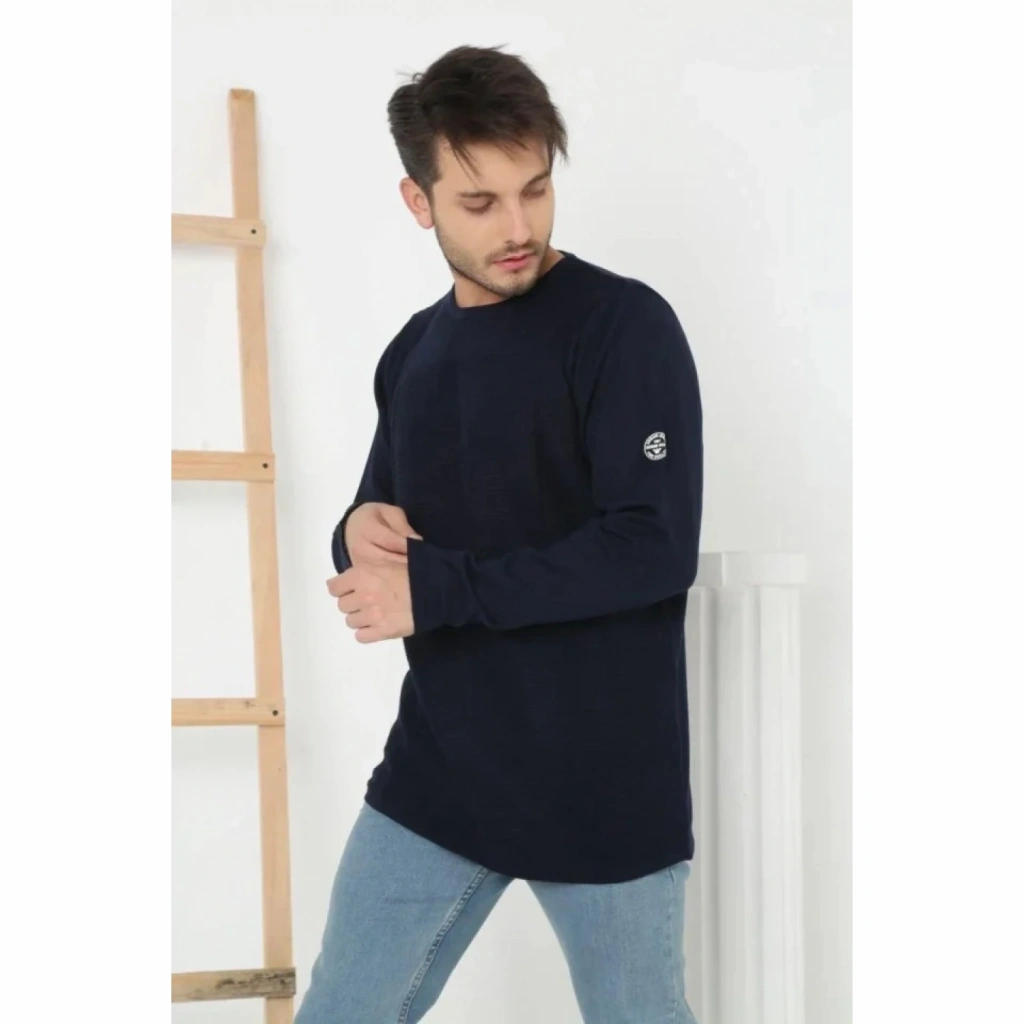Erkek Biskilet Yaka Kolu Armalı - Lacivert