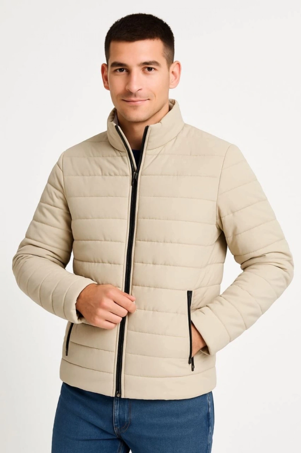Erkek Bomber Mont Ceket – Su İtici Kumaş, Kapitone Astarlı, Fermuarlı, Kışlık - Bej