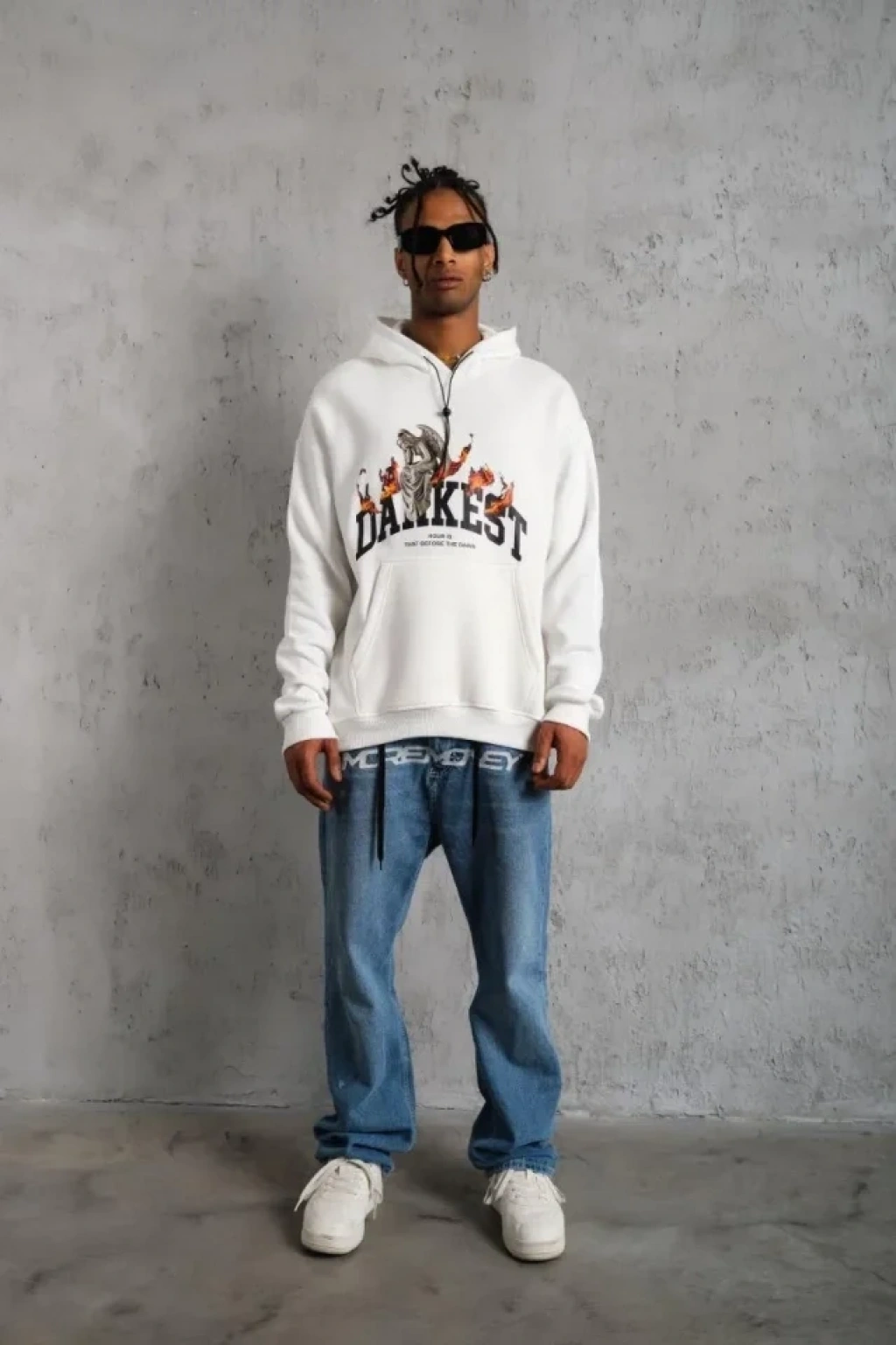Erkek DANKES Baskılı Kapüşonlu Sweat - Beyaz