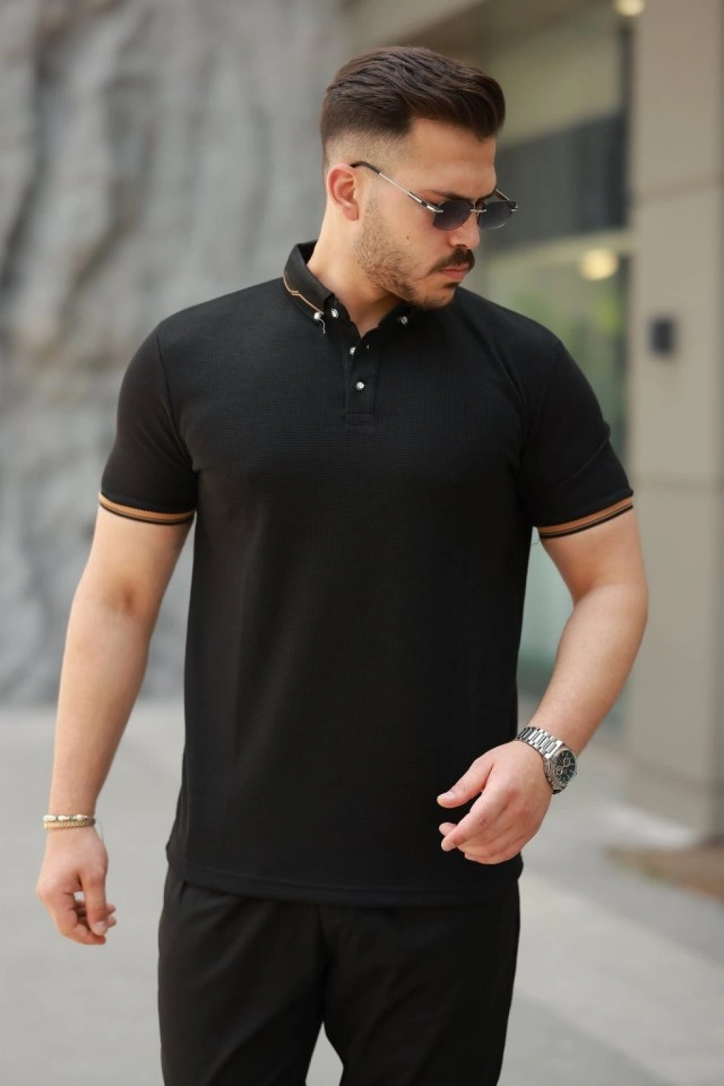 Erkek Düğmeli Yaka Waffle Kumaş Kısa Kollu Tişört