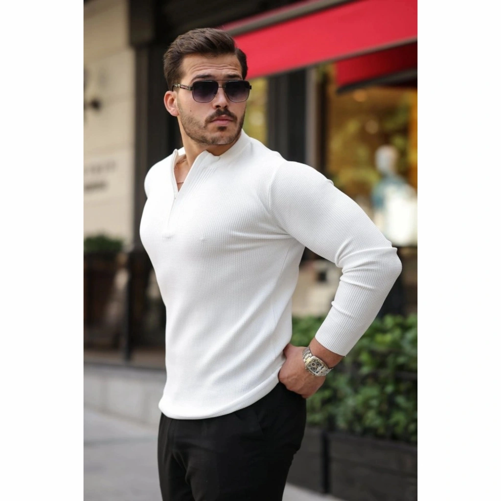 Erkek Fermuarlı Bisiklet Yaka Dokulu Uzun Kollu Triko