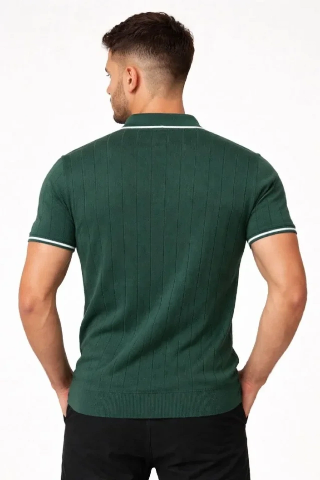 Erkek Fermuarlı Yaka Fitilli Triko Kısa Kollu Regular Fit Tişört T-shirt - Yeşil