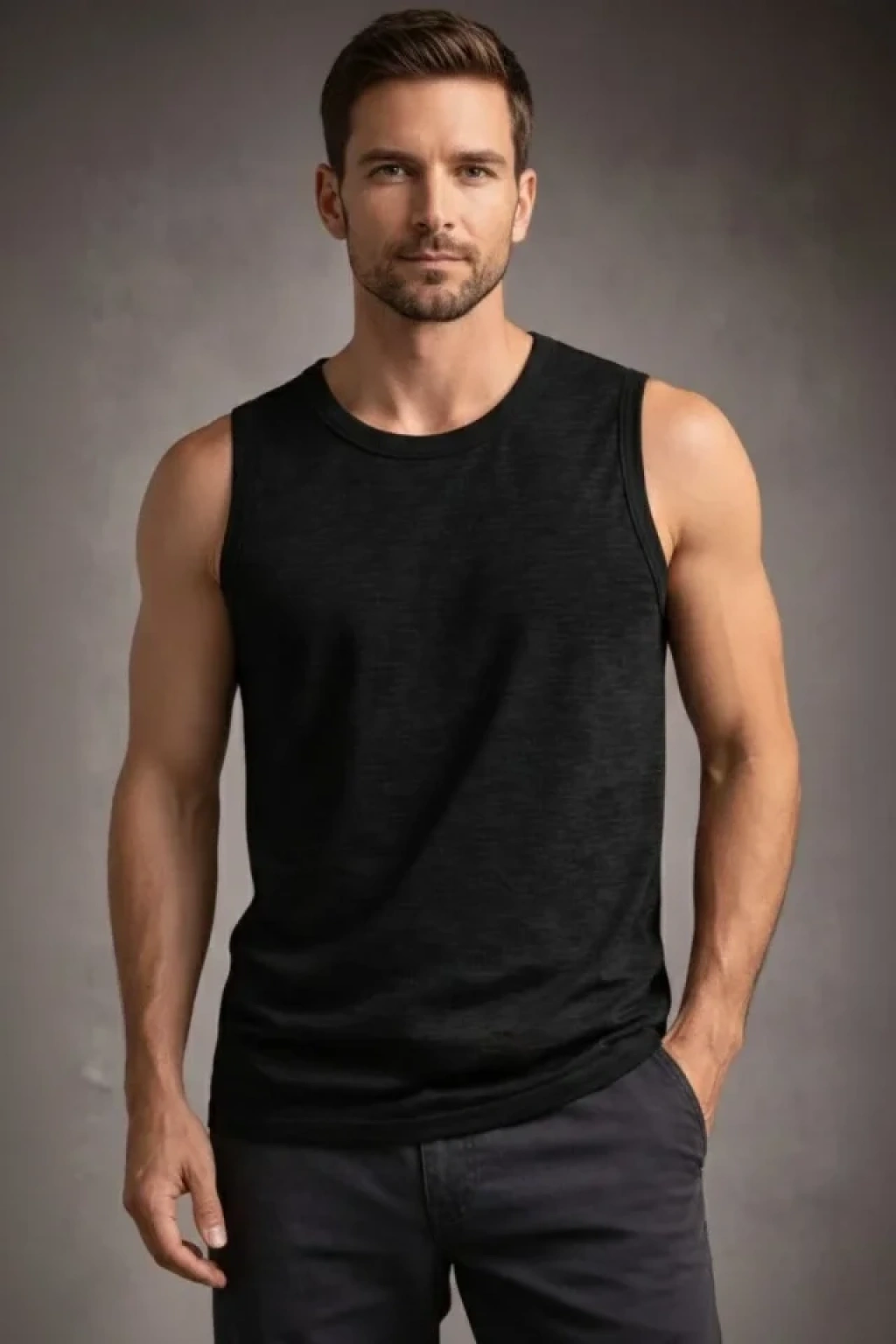 Erkek Flamlı Kumaş Sıfır Kolsuz Atlet Basic Spor Üst, Günlük Ve Fitness Kullanımına Uygun - Taş