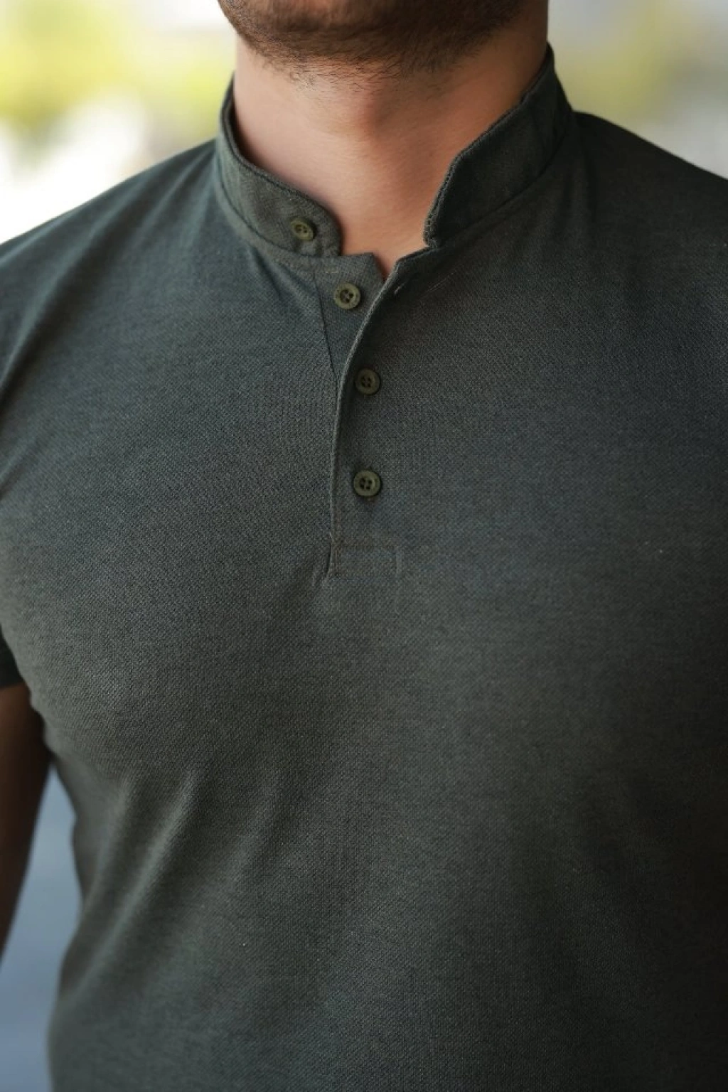 Erkek Hakim Yaka Dokuma Pamuklu Kumaş Kısa Kollu Tişört