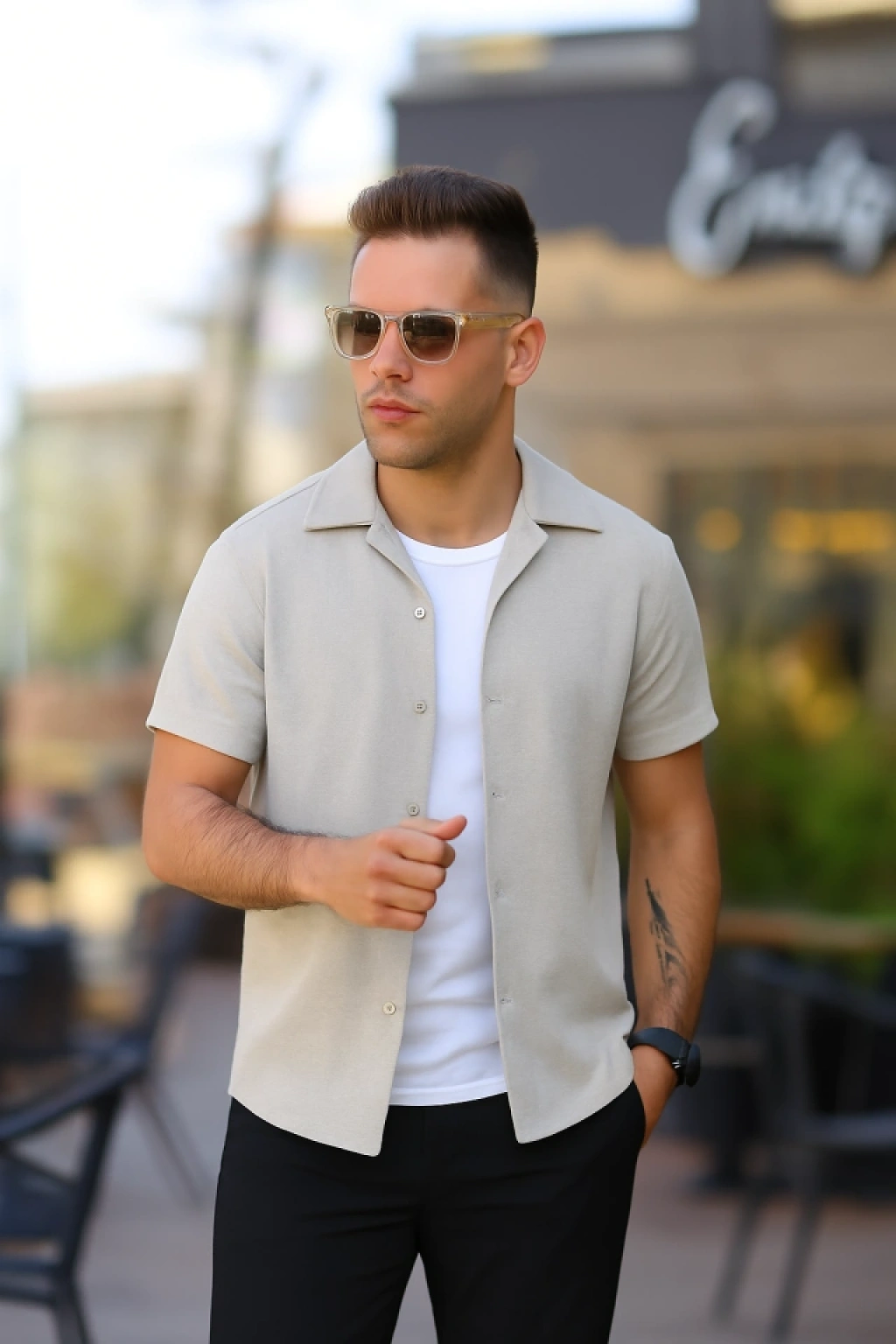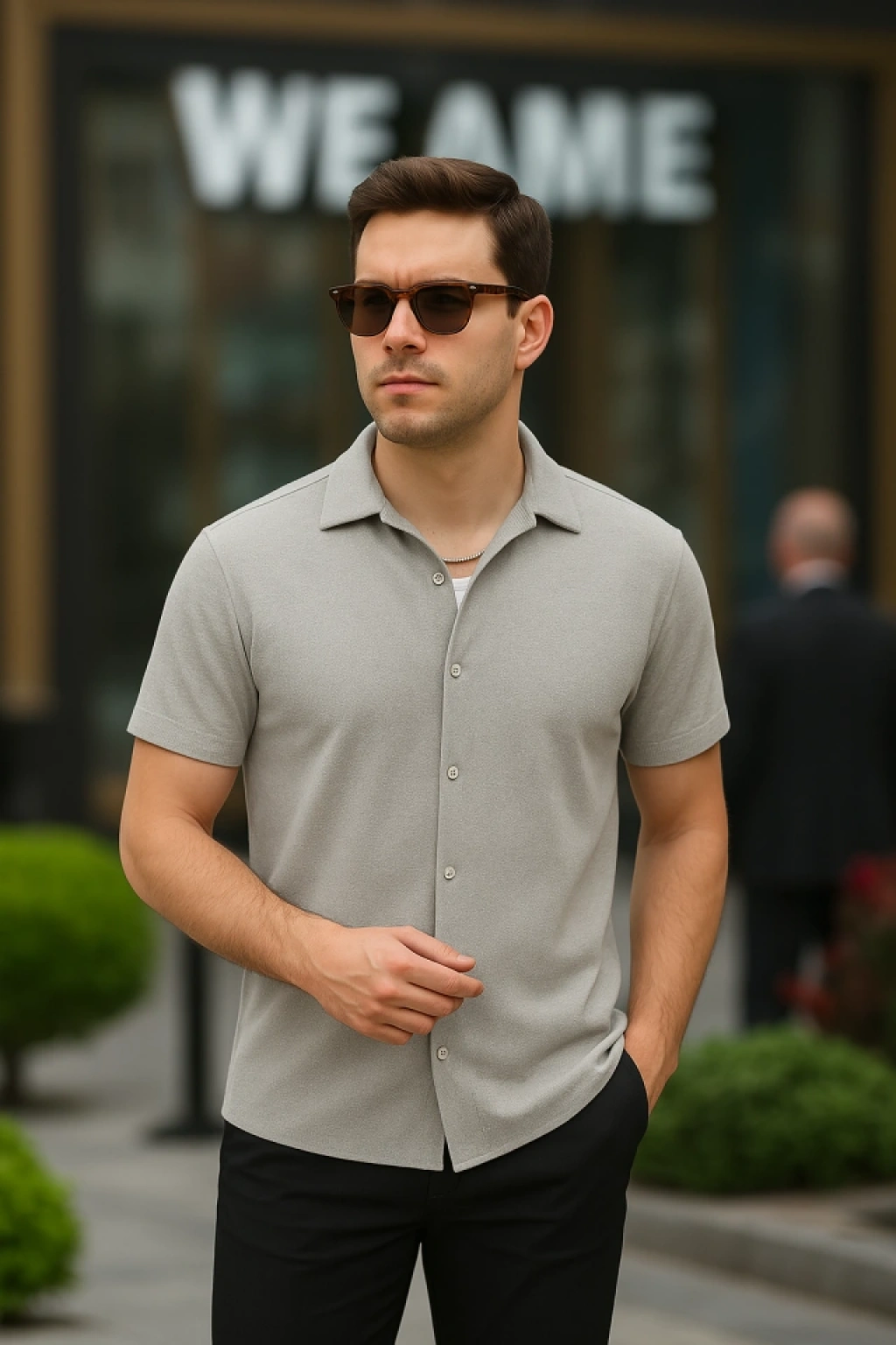 Erkek Kısa Kollu örme Kumaş Pamuklu Gömlek