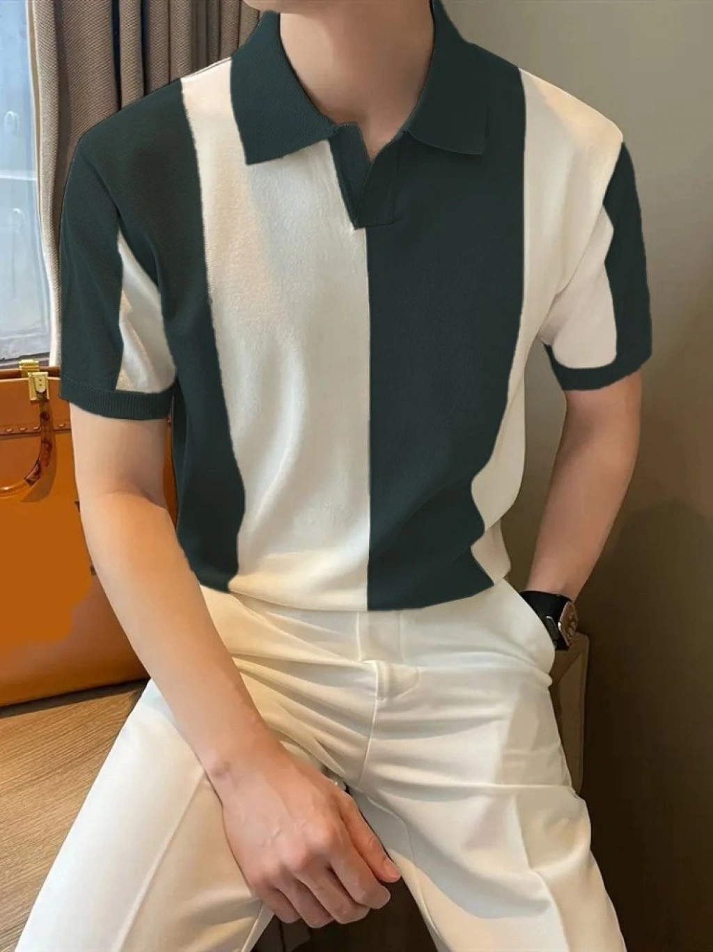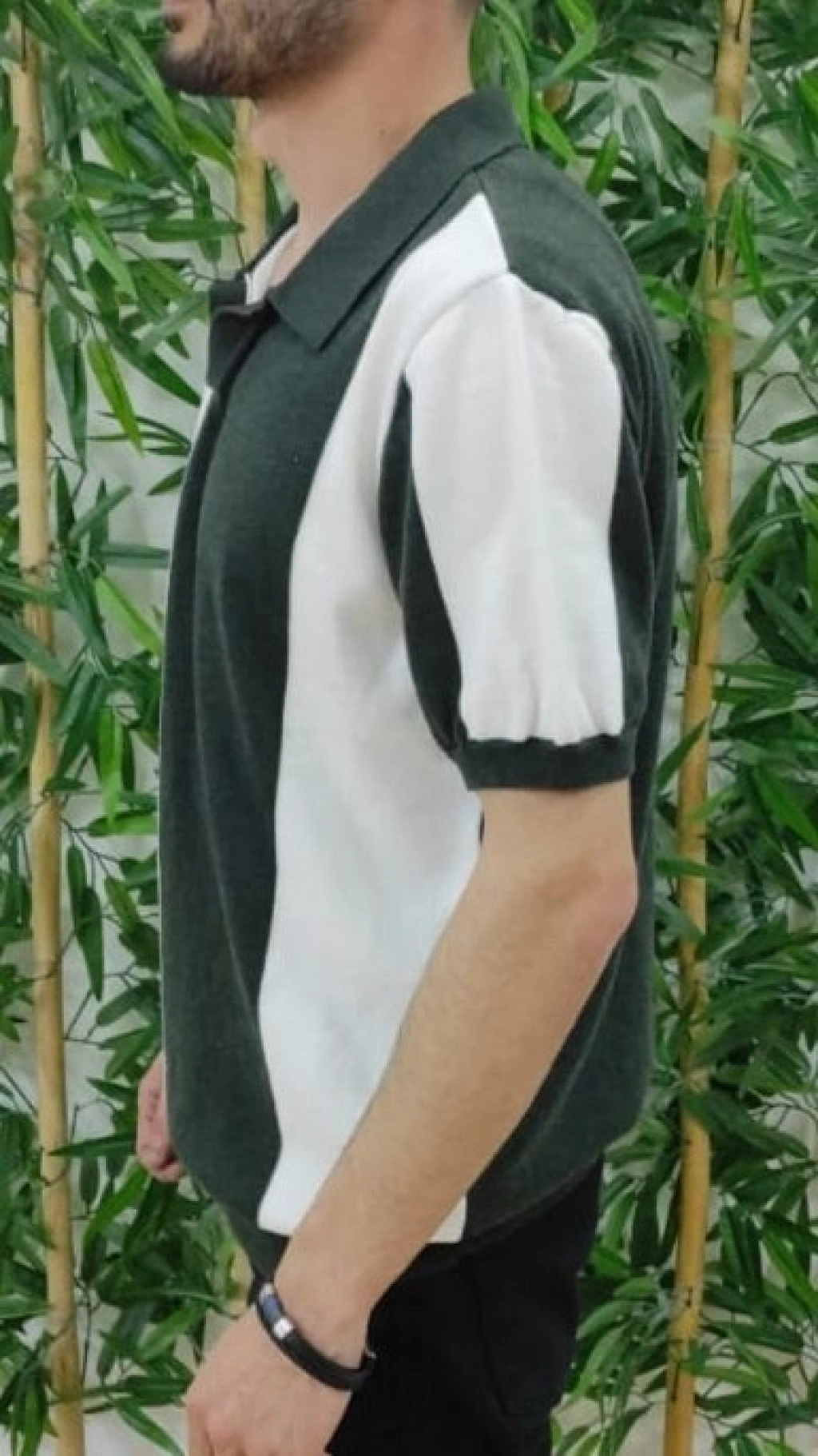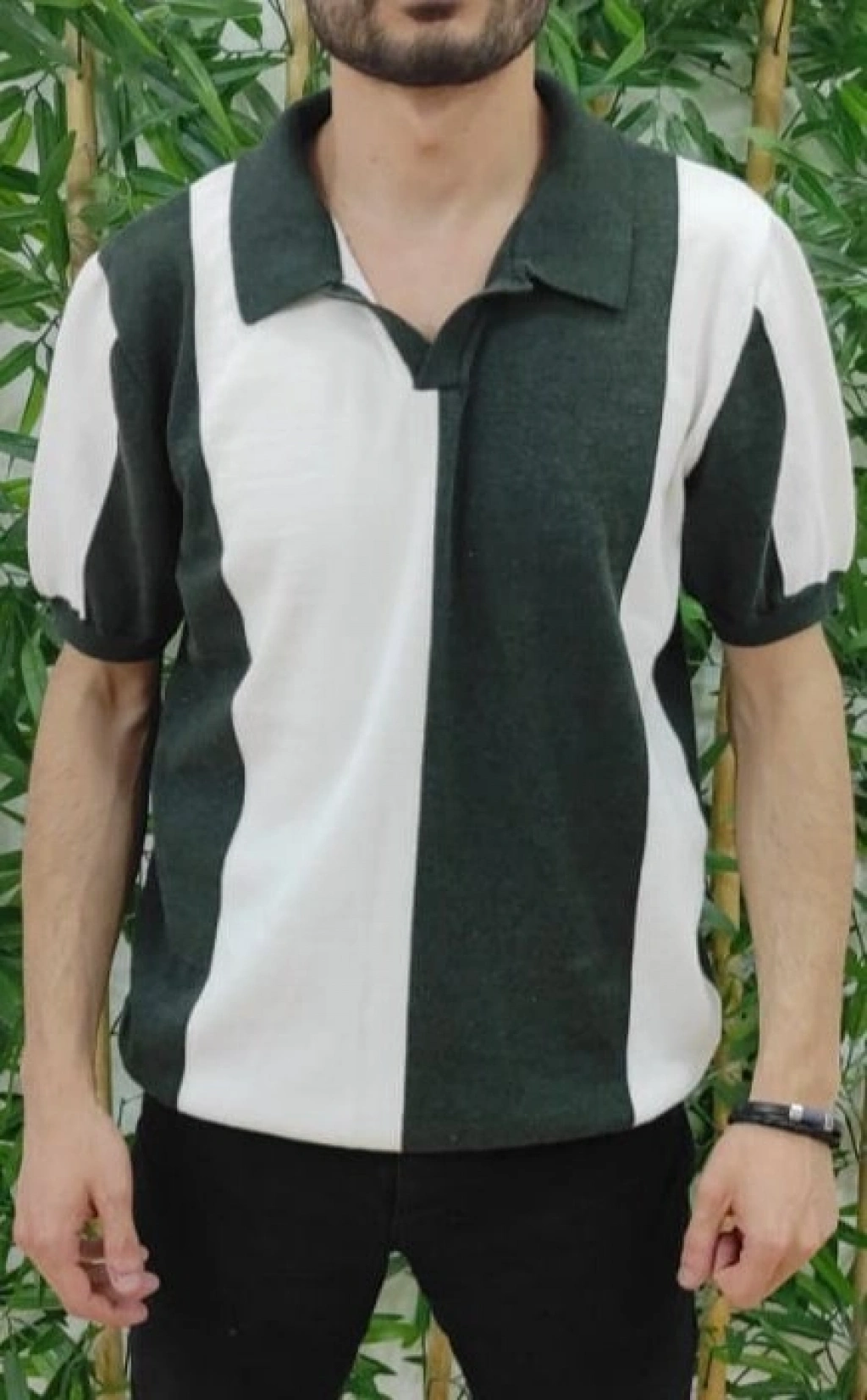 Erkek Kısa Kollu Polo Yakalı Blok Desenli Triko Tişört