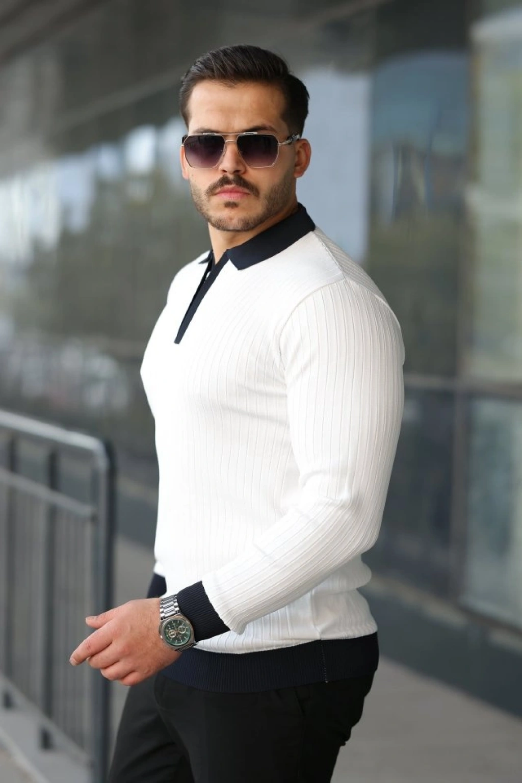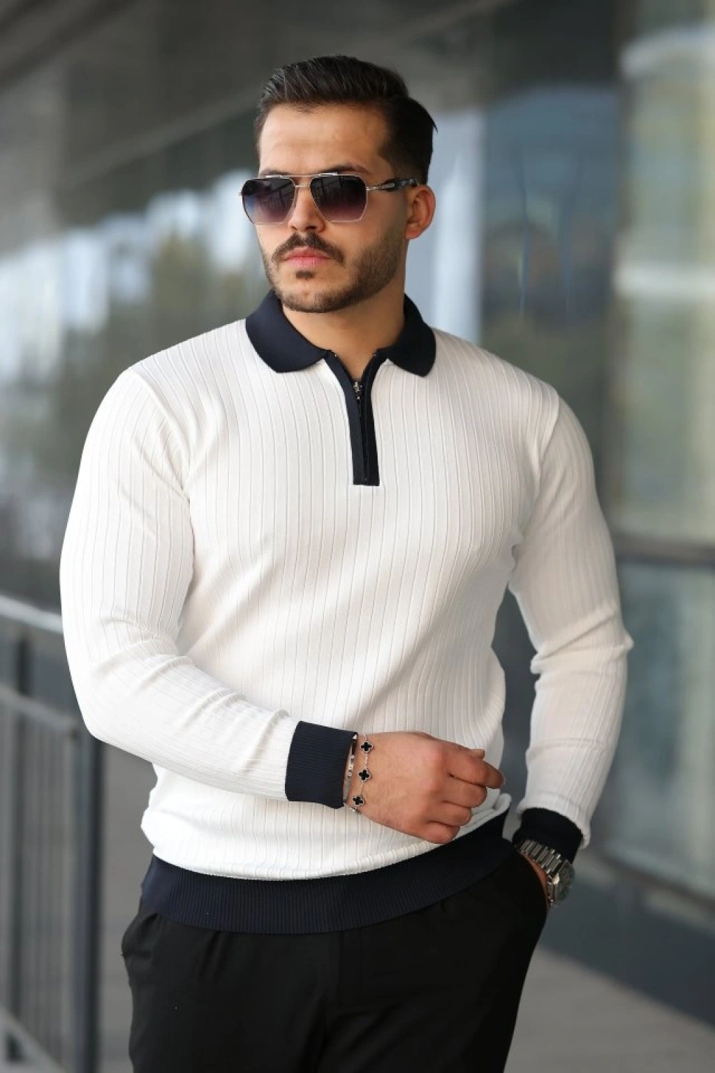 Erkek Fermuarlı Bisiklet Yaka Dokulu Uzun Kollu Triko