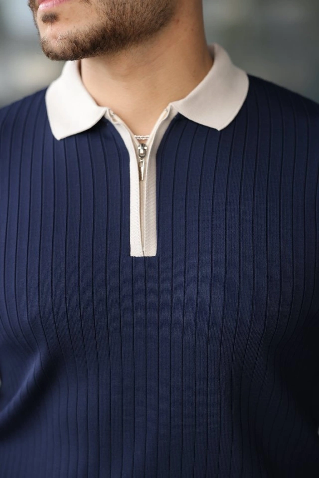 Erkek Fermuarlı Bisiklet Yaka Dokulu Uzun Kollu Triko