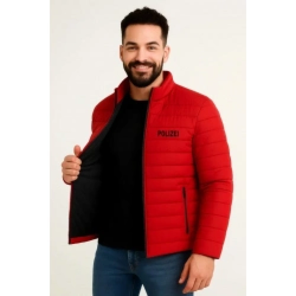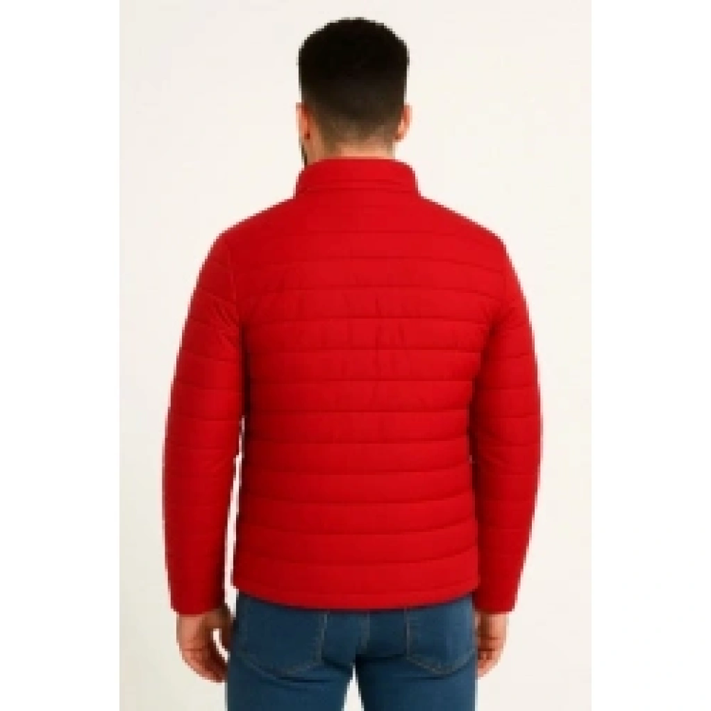 Erkek Mikro Su İtici Kapitone Baskılı Astarlı Fermuarlı Bomber Mont - Kırmızı