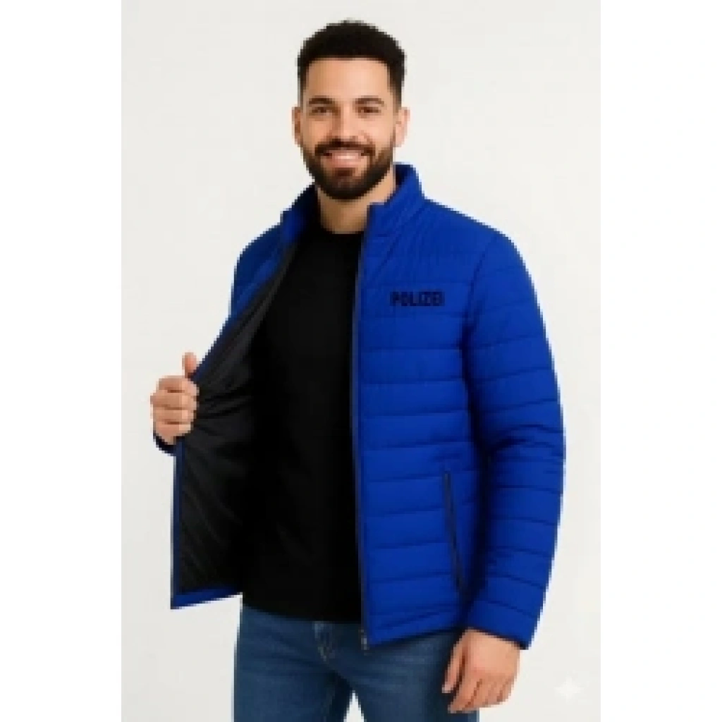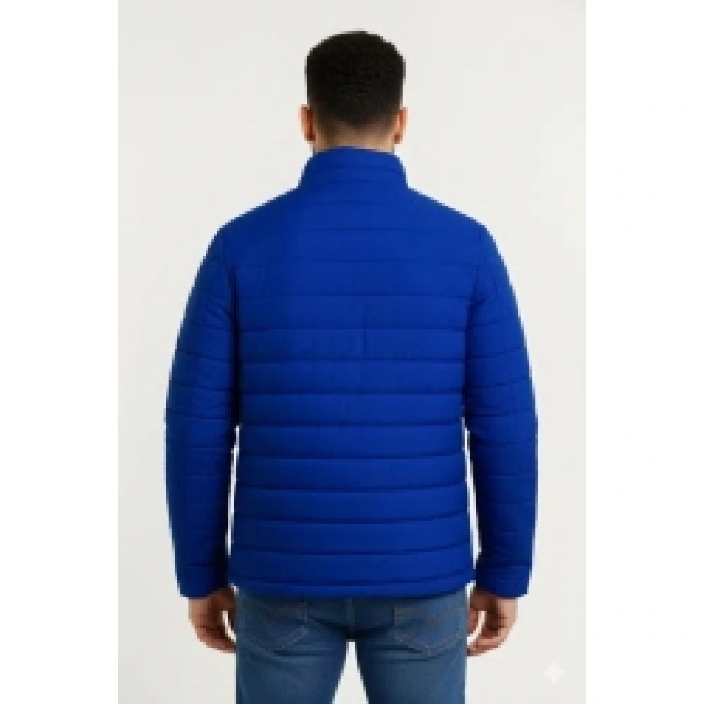Erkek Mikro Su İtici Kapitone Baskılı Astarlı Fermuarlı Bomber Mont - Saks Mavisi