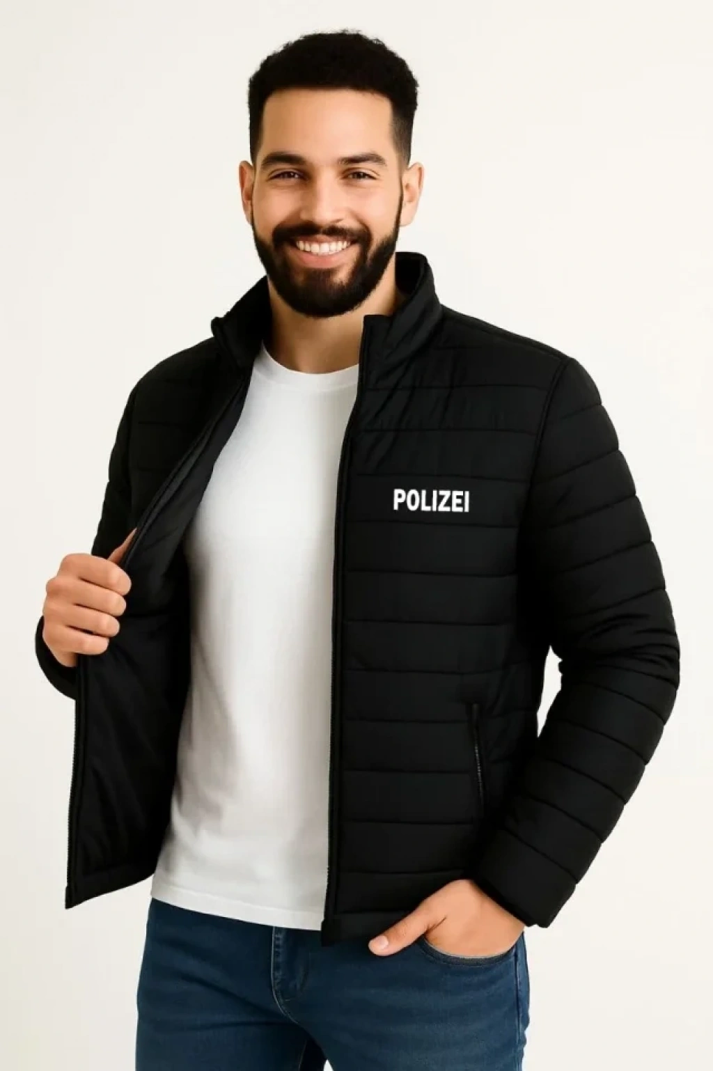 İçi Kapitone Astarlı Tam Kalıp Baskılı Bomber Ceket - Siyah