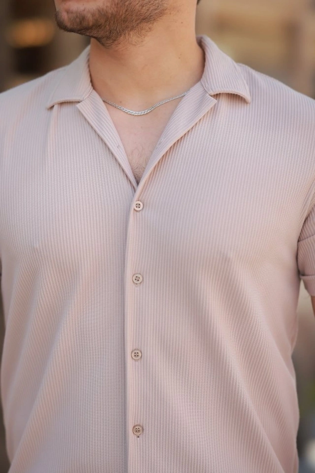 Erkek Waffle Kumaş Kısa Kollu Gömlek Şort Takım Regular Fit Yazlık İkili Set - Bej
