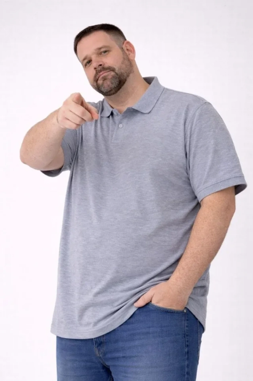 Erkek Pike Kumaş Düğmeli Yaka Battal Büyük Beden Günlük Kısa Kol Tişört T-shirt - Gri